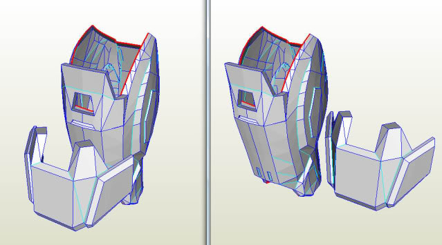 I changed the scale of the knee to fit into the shin. This is going to be scaled and unfolded at 480mm. Keep in mind that this is NOT for general release. FR owns these models and he has the final say on their release schedule. I only did this as a "proof of concept" of sorts to show how well his models fit together.