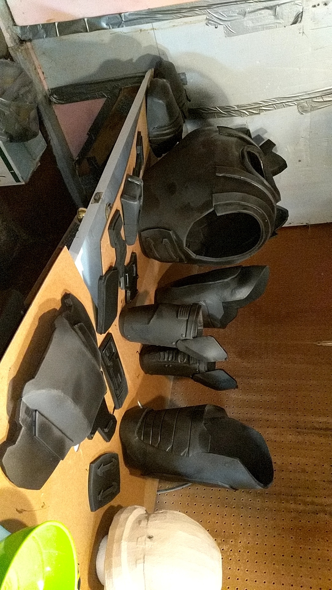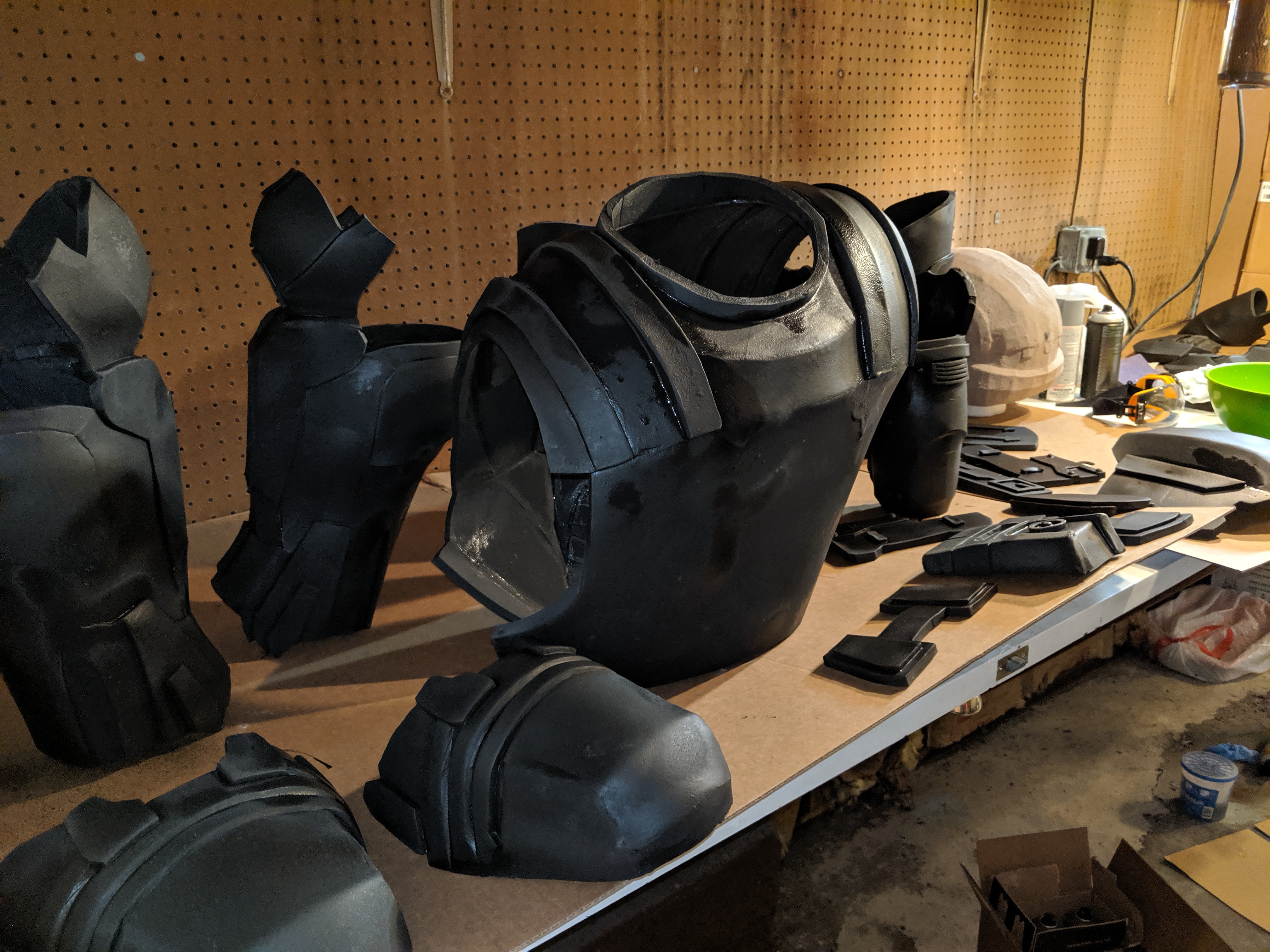 Wow it looks so good and yes Leak seal takes getting used at first to but is so much better in the end. Its stronger and sandable. I usually spray from at least 18 inches away and build up my coats lightly, especially at first. But it's nice because you can literally eliminate all imperfections if you let it cure for a day, sand and caulk imperfections, then spray your final coats. It can get expensive though.Well all primed and ready to wet sand before painting my armor. I went ahead and used leakseal as suggested by a few people here and have to say that stuff was a lot harder to control then I expected. Not as forgiving as plastidip on application