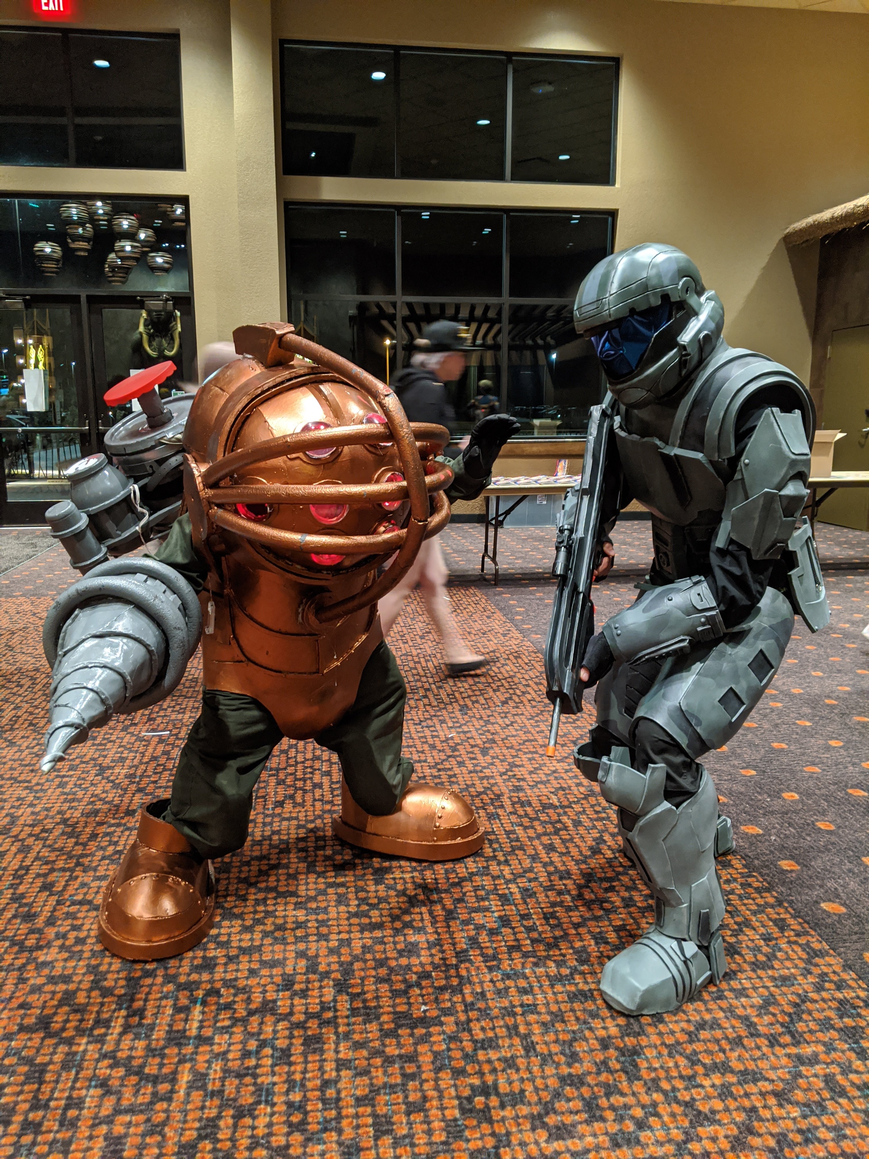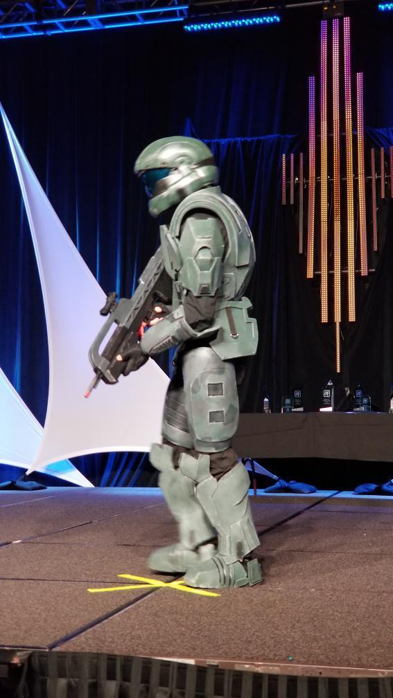 Finally got to debut the suit! I also competed in the contest and had to compete in the "Masters" bracket since beginner and advanced were filled but I still had a great time and the judges seemed to like the costume as well as the audience. Played the warthog run music from halo 3 for my stage walk.