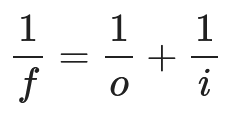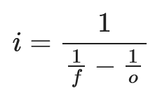 This equation relates the focal length to the distance `o` and `i`, but the current form of this equation is not very helpful.