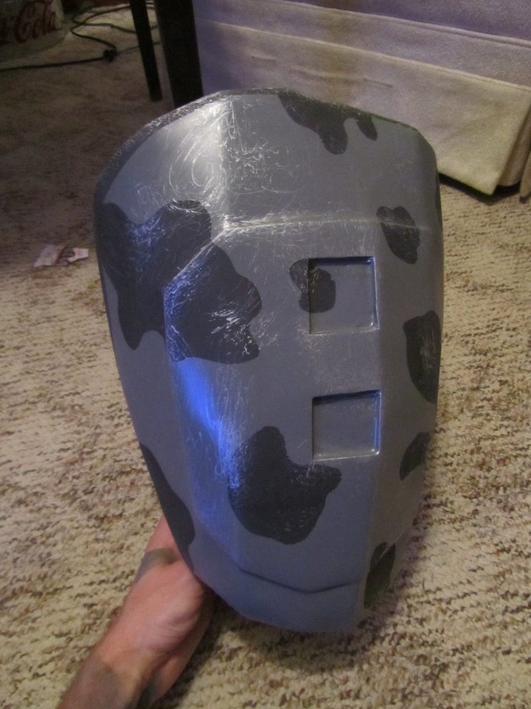 The knee! I know it doesn't seem like much, but the thigh is also being painted right now, so by around 9:30 - 10:00, I'll have another picture. Plus, the strapping is already in place, I just have to glue it down when the paint dries.