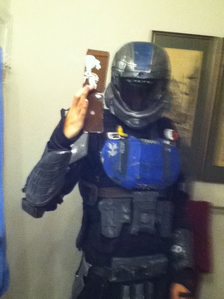 who the heck is that blue spartan and how the hell did he/she make that visor?!?