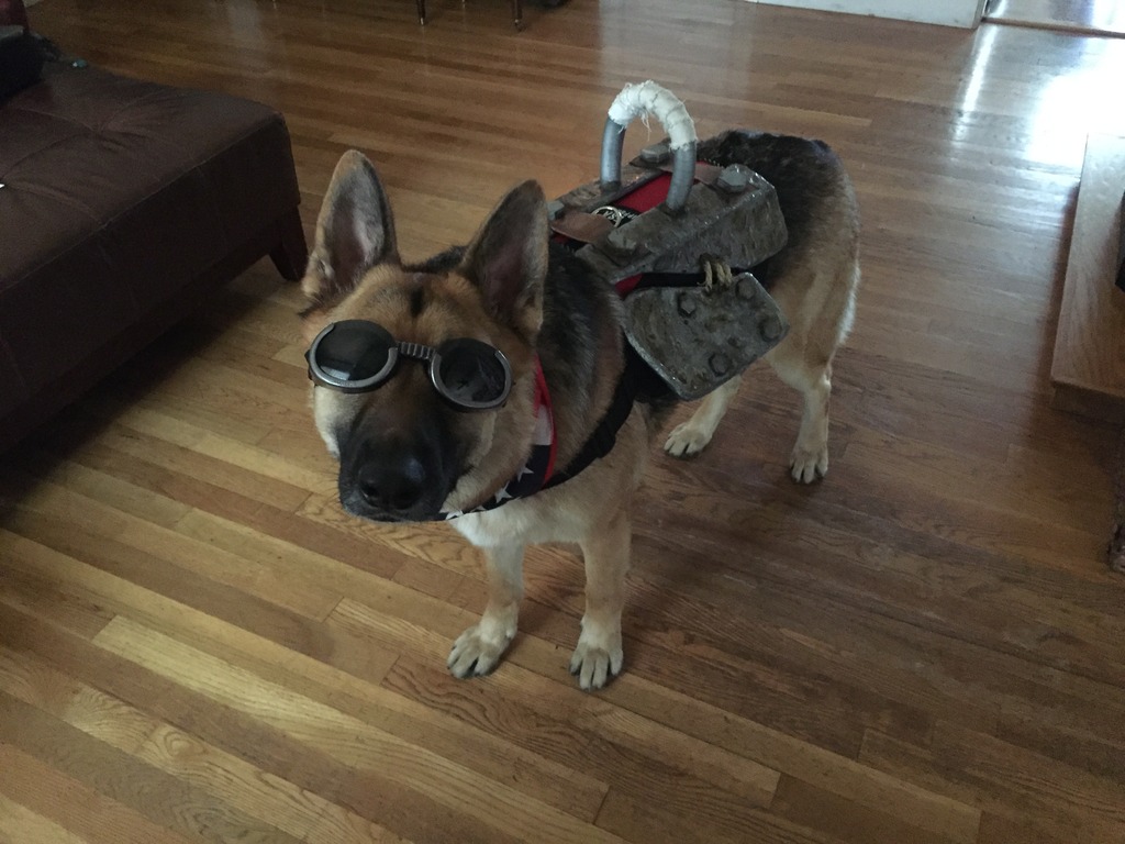 I will, however, be in a Fallout Vault Suit with my dog, Sarge, who will be wearing his Dogmeat costume.