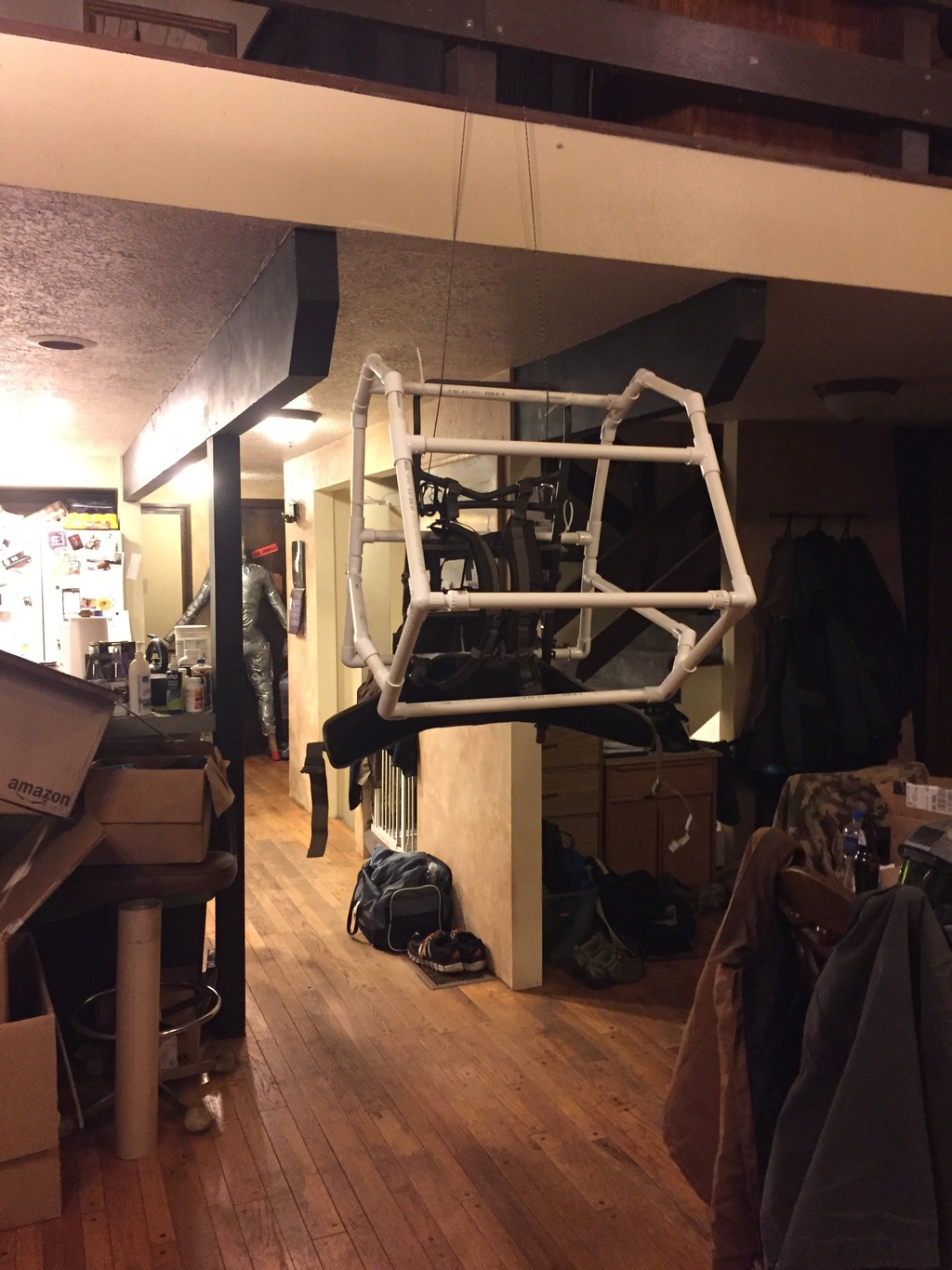 A friend and I put down some upholstery foam around the frame of the Engineer. This is the base form that all the airsacs will be sitting on top of.