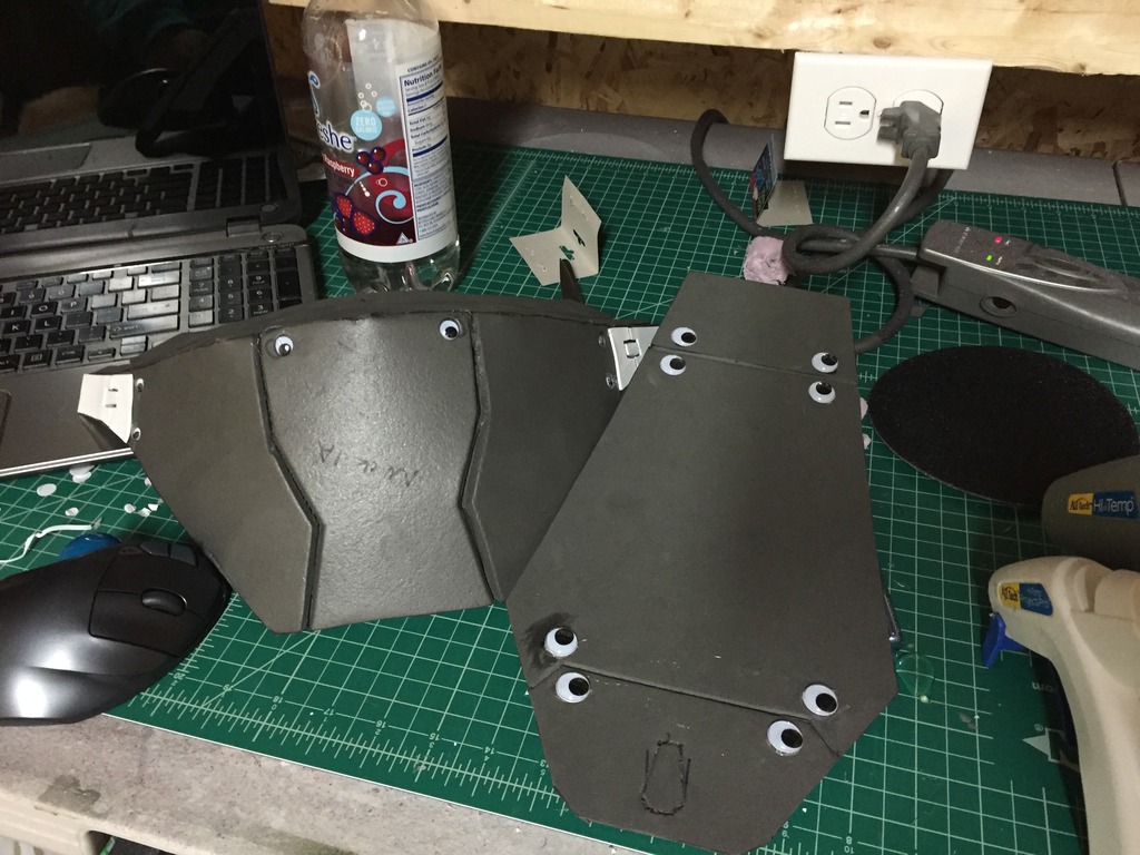 Googly eyes are great round surfaces if you're trying to add "screws" or bumps to your armor! They're nice and uniform and all you gotta do is tack them on!