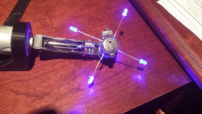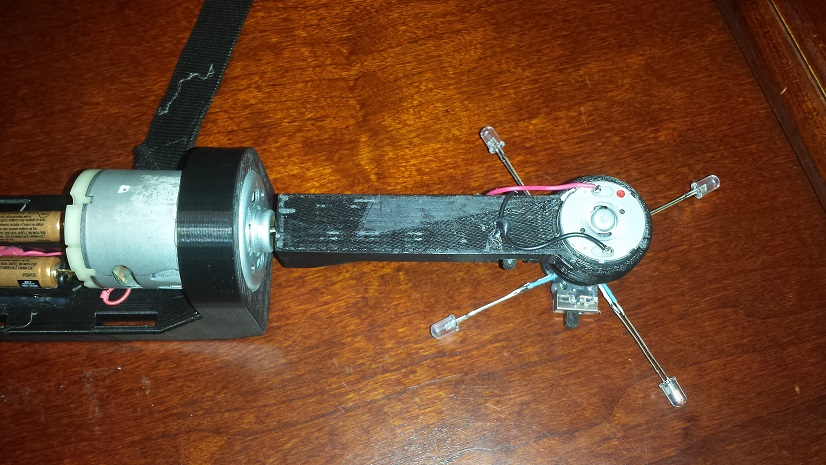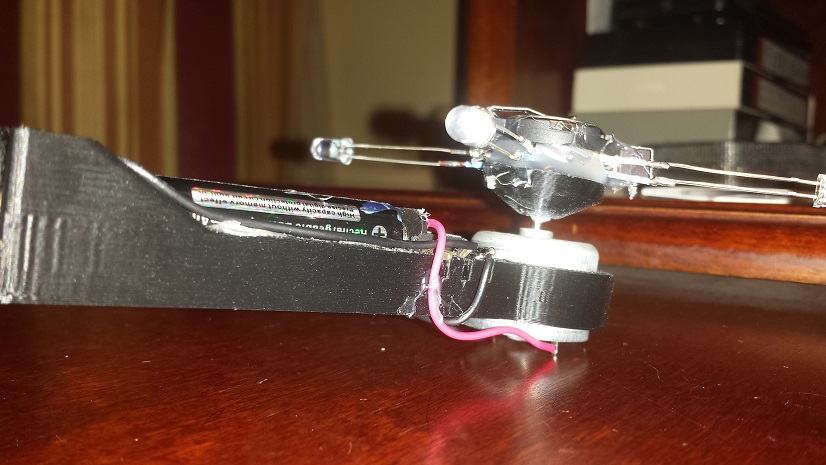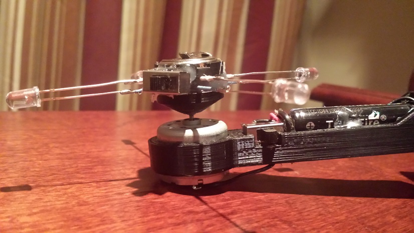 With the LED's wired to be turned on with a switch, It was time to work on the Small motor support. The Small motor spins the LEDs so that it looks like a circle: