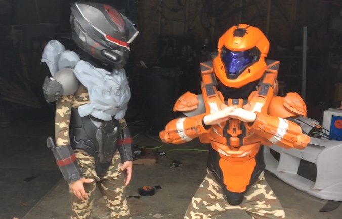 Hoping to get that Warmaster helmet all painted up tomorrow :) and don’t mind the primitive stripes on the forearms. I had asked the boys to mask a design on them. I said they could do a stripe or whatever they wanted. And what did they do? They put a single strip and copied each other. How original!! Oh well they’re stuck with it lol