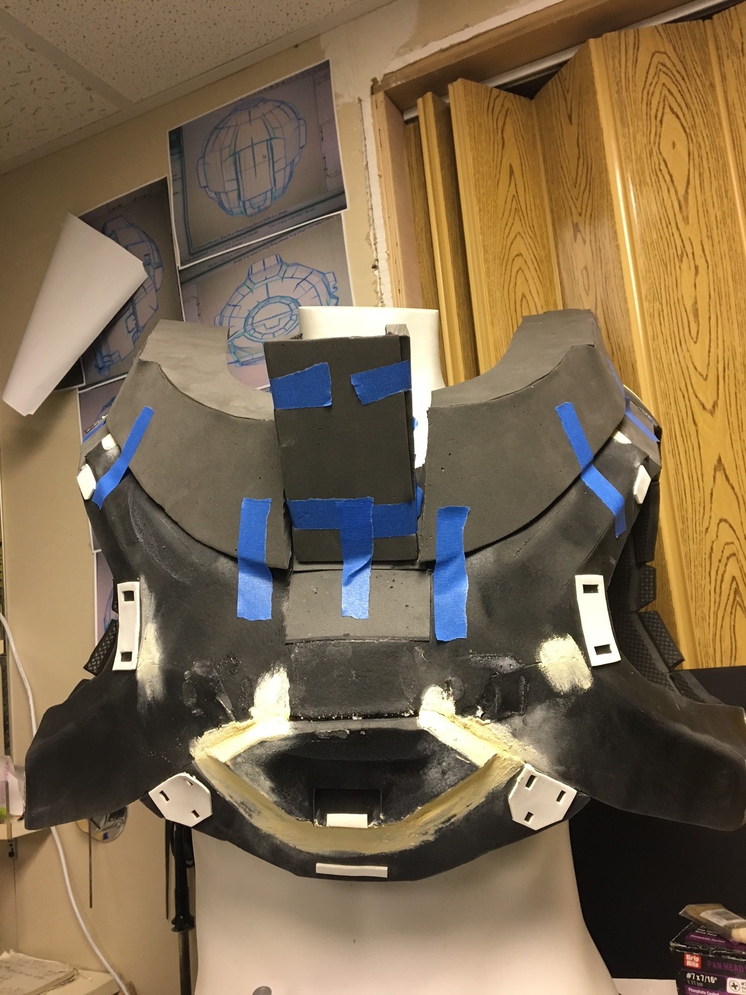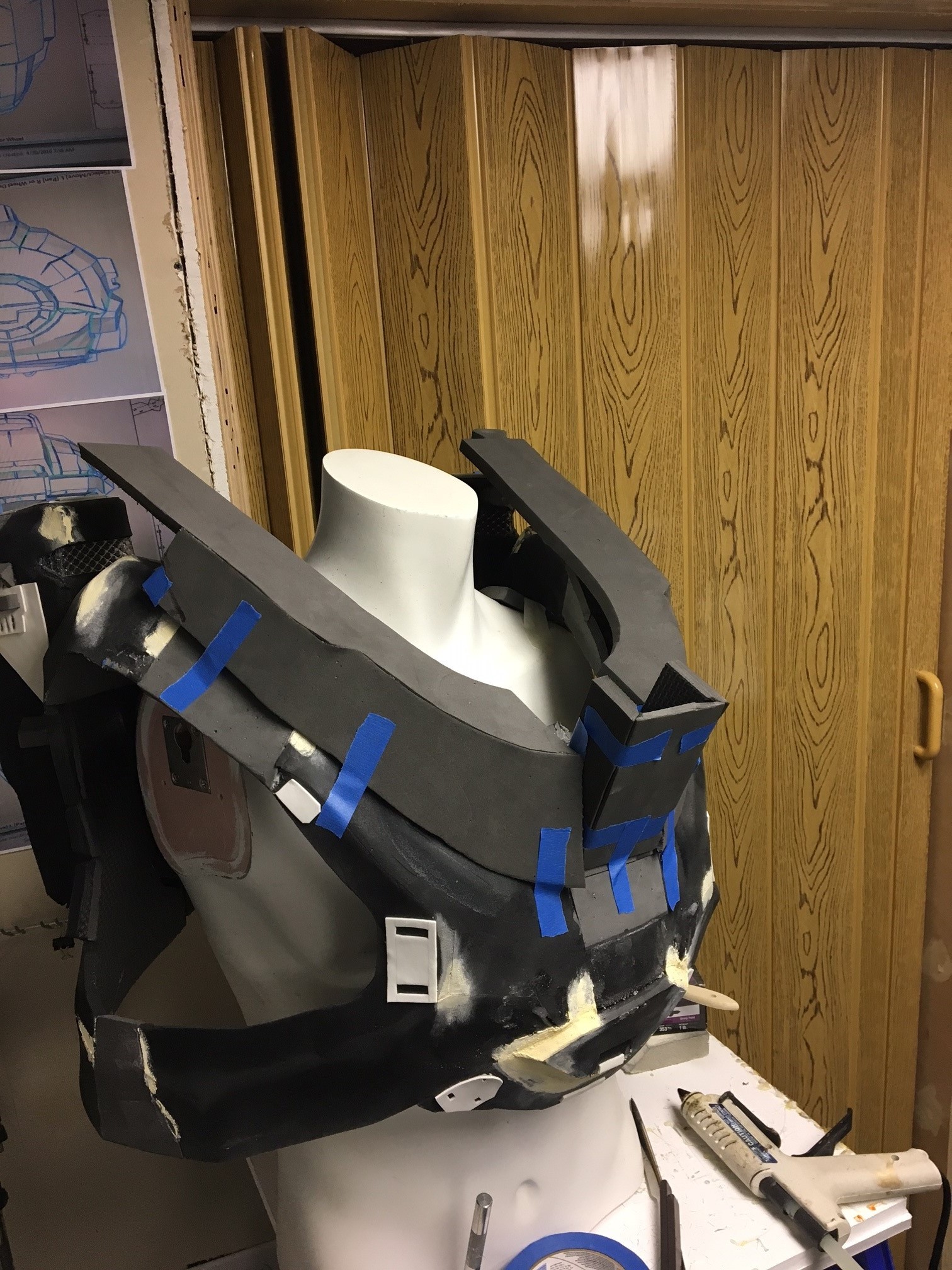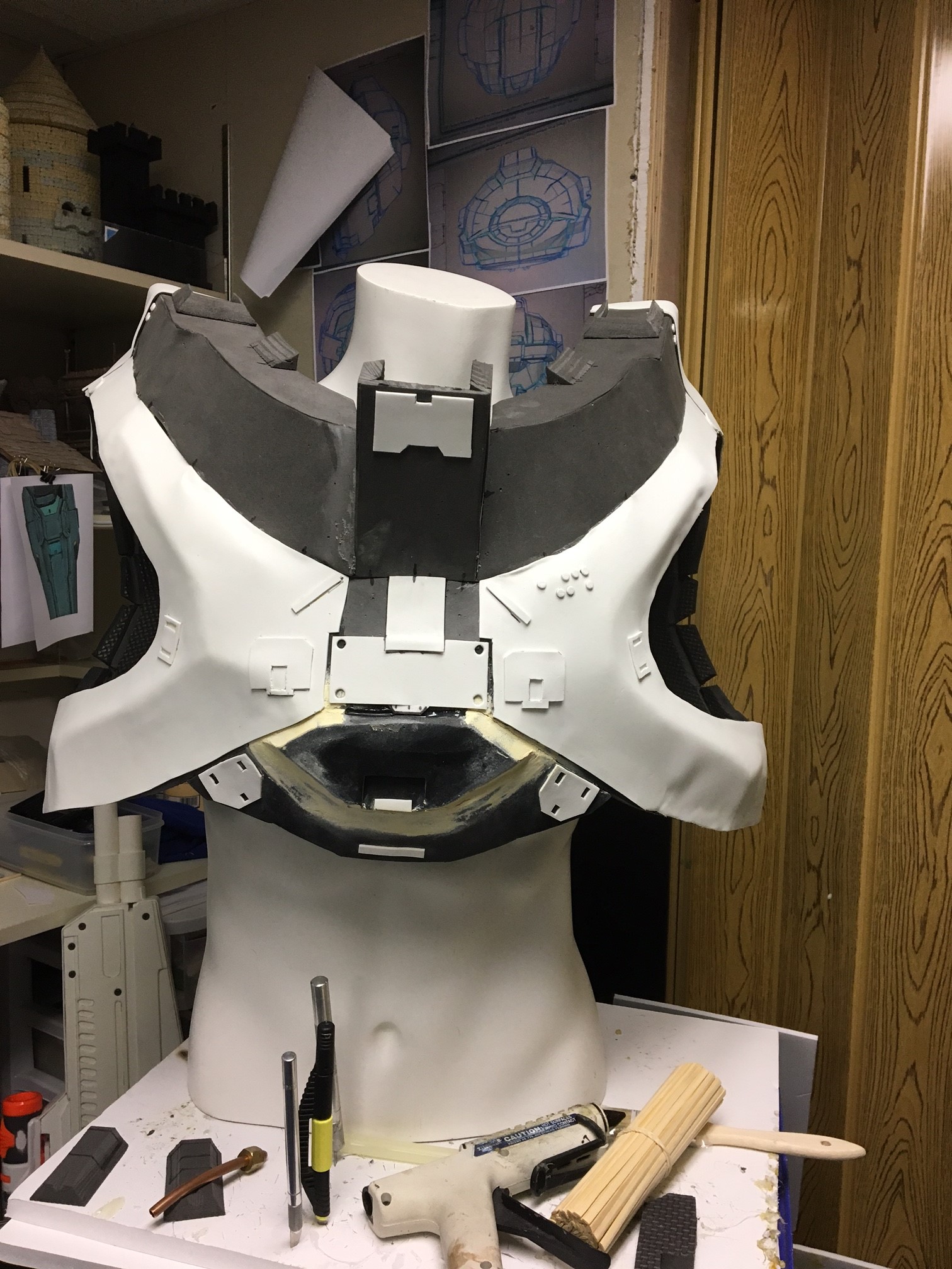 Now in your last batch of pics, I see you cut down 2 pieces of foam on chest right by the shoulders.....not sure why you did that. Is it because they were sitting too high or protruding too far out? Not sure.....regardless, they need a bit of help. Before I can do so, I need to know a bit more about the situation.