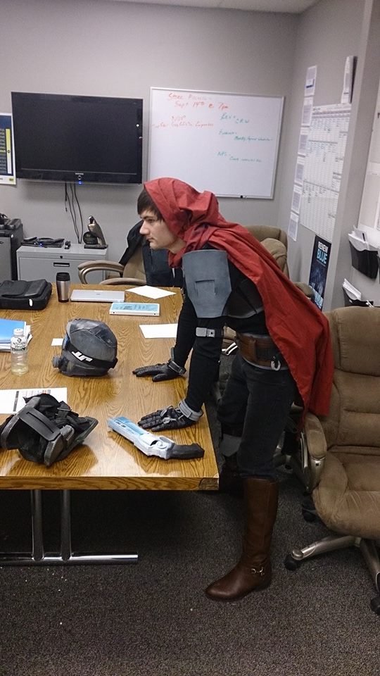 ANOTHER UPDATE!!! As i have stated multiple times, the first initial costume was just a test, then a refined one. Now im getting into really refining the costume. Massive updates to chest, arm, gloves, and the helmet! Here is some pics from an adventure at Best Buy!