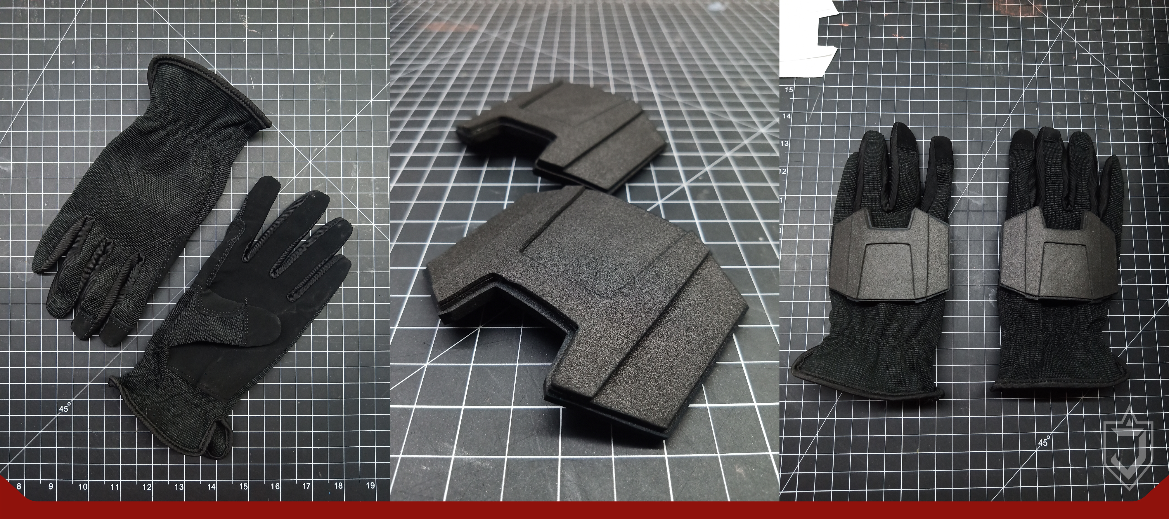 Started simply by buying a pair of nice/cheap gloves from AutoZone. I like these ones because of the texture on the top part. Then, I built the armor pads with 3 layers of eva foam (one 4mm, and two 2mm).