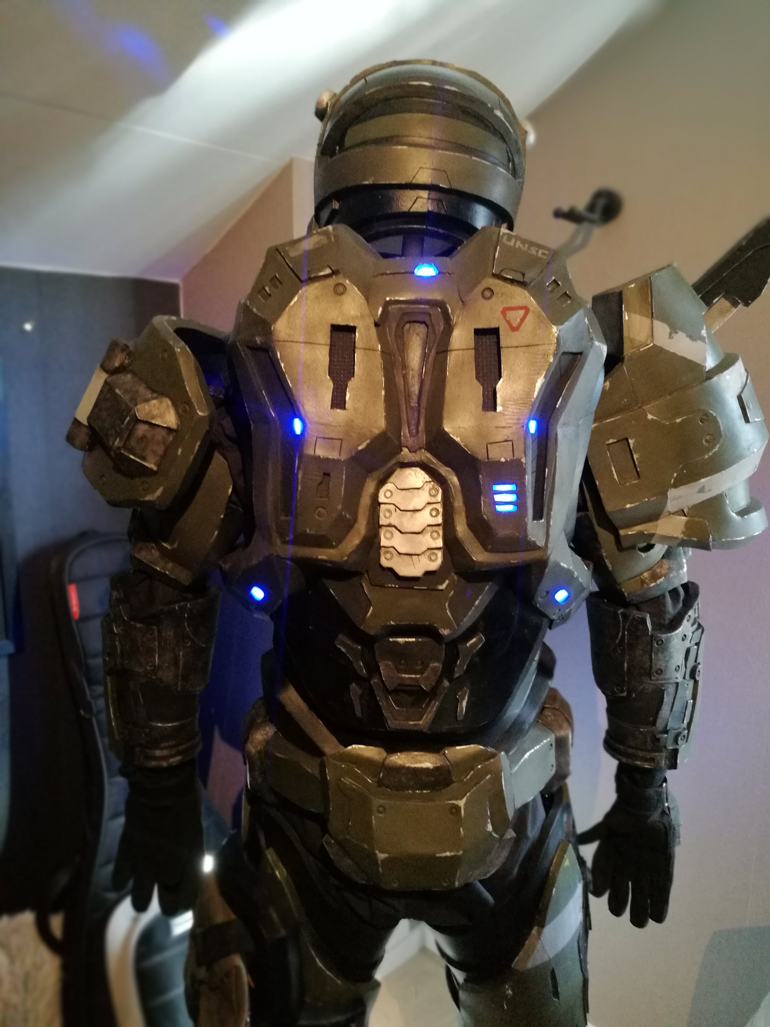 In other news I just finished installing the blue lights on the chestplate and on the arms, tomorrow I'll get to the ones on the thighs. I'll post some pictures when I'm done with that!