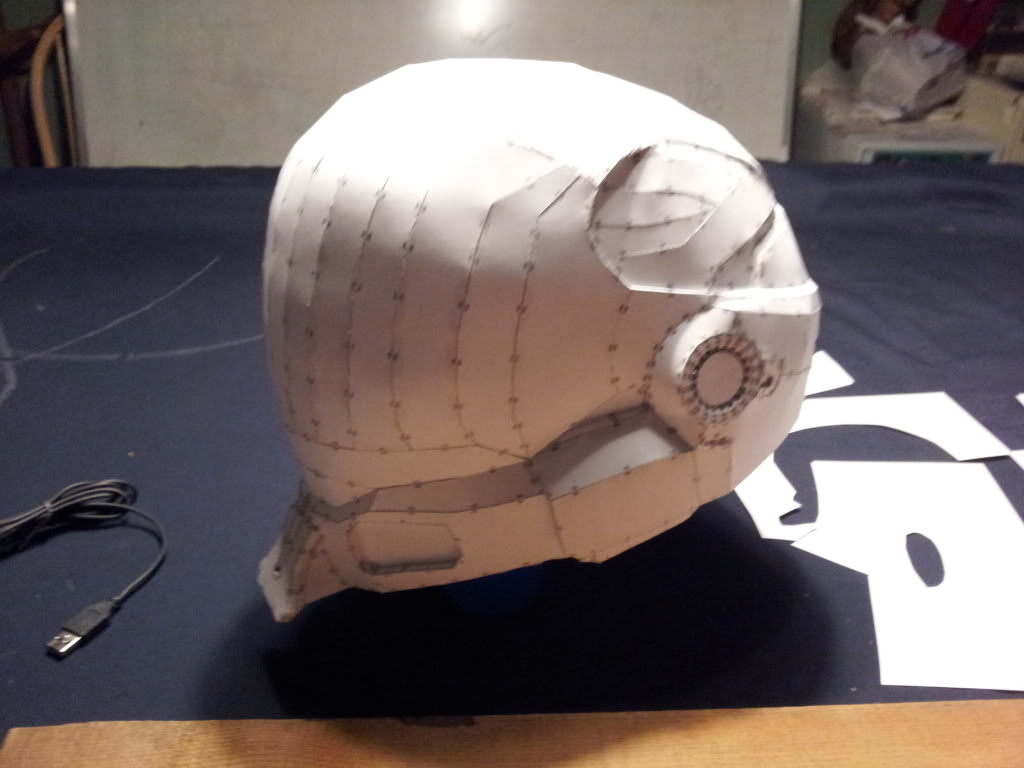 UPDATE: I've built the helmet, but scaled it a little too small. I can wear it for now but not if I add any thickness when fiberglassing, so I'll be building it again. Just wanted to share a pic of the completed helmet. There are a few challenging parts, but overall it's not too difficult.