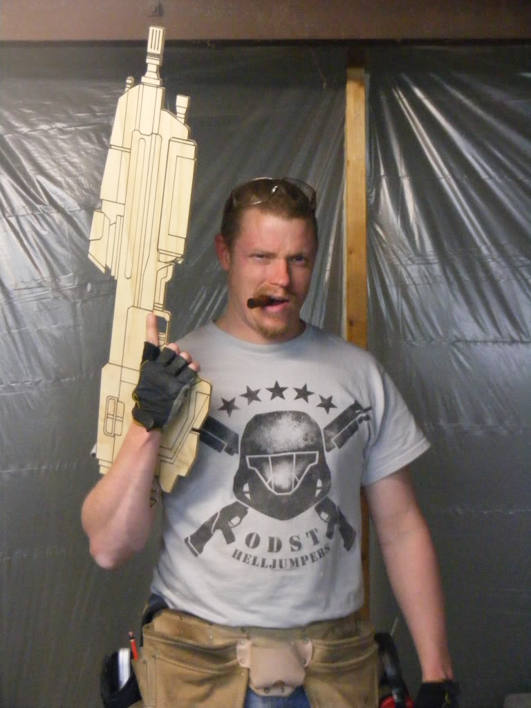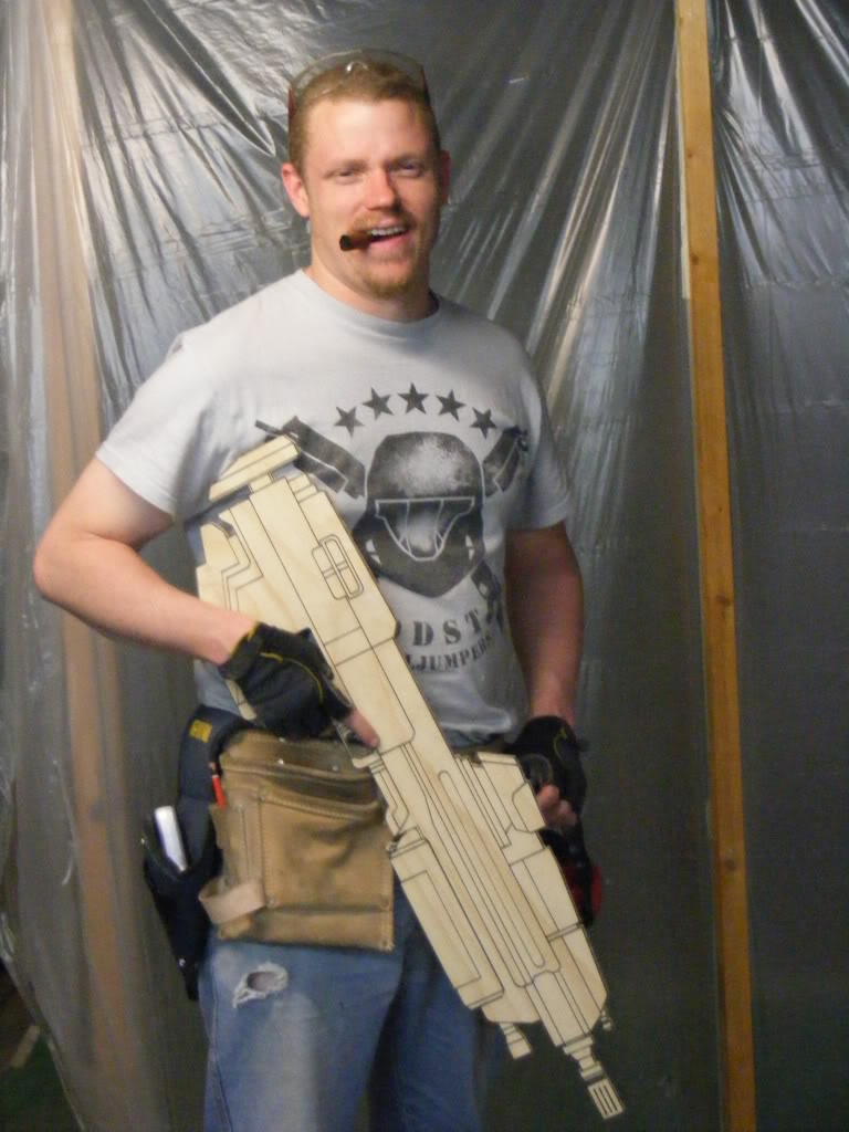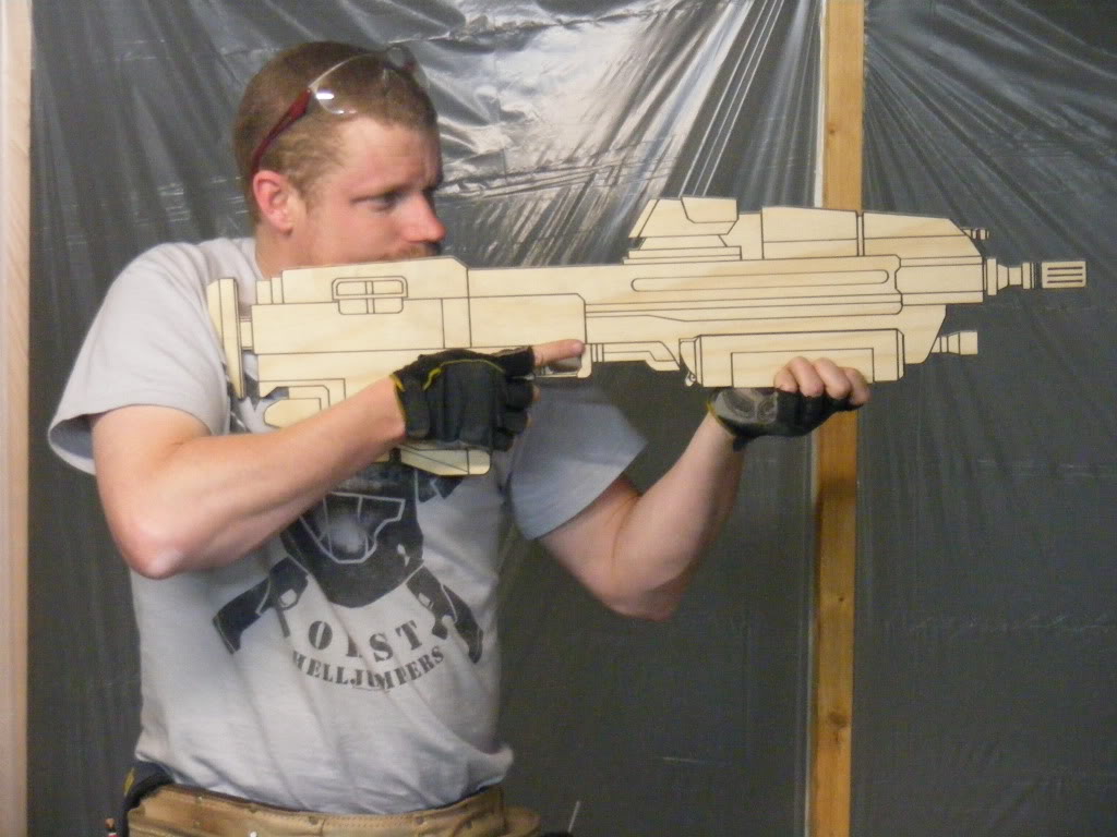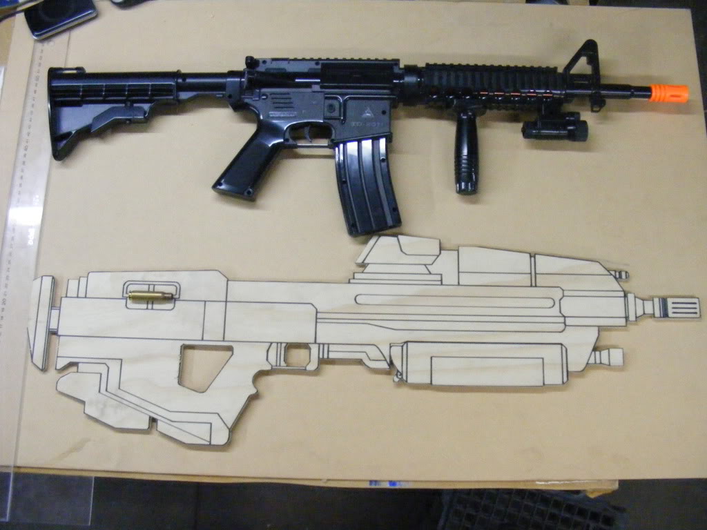 Which let me down. Using some 1:1 scale toy guns I have here- An M4 at 800mm and an EBR variant with collapsed stock at 890mm -I did some size comparisons by eye with Reach in game reference pictures. Even on Kat, who would be closer than most Spartans to the average sized male, the MA37 looks to be more like the 800mm long than my blueprint's 880mm.
