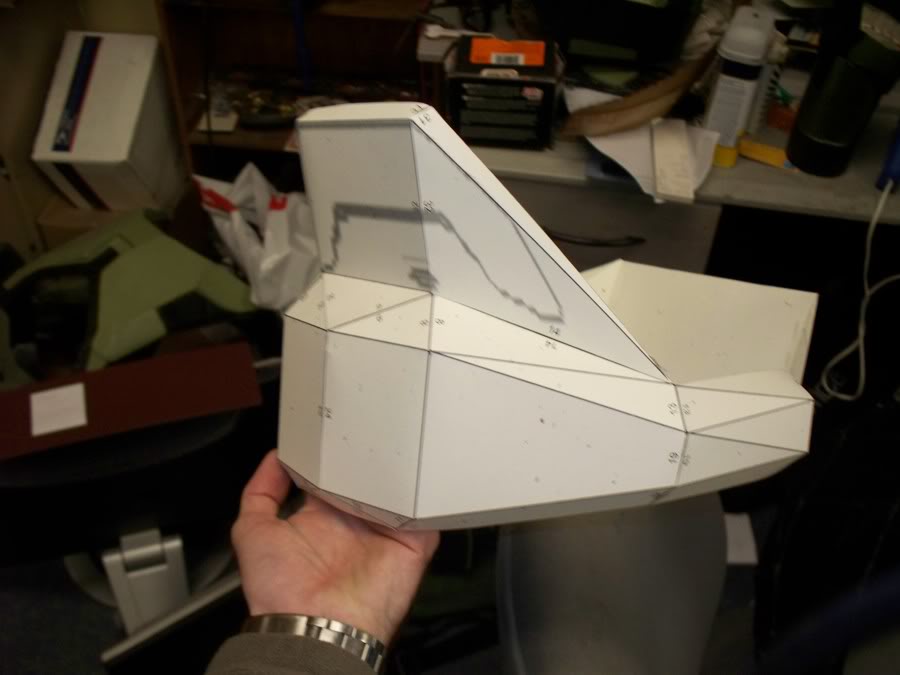 The back of the helmet gave me all sorts of trouble. When I originally made the helmet, I don't think I had the right proportions, so there wasn't enough room for my head to fit. Therefore I just tried to make it work with what I had. I tried to keep the right detail, it just looks kind of warped. I also didn't want the helmet to be too large, so I don't really want to go back and fix it, and risk making a bobble head Master Chief.