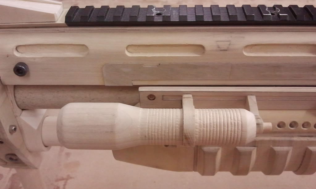 The last detail I added was the diamond pattern on the pistol grip. I made it by cutting out the rubber mat from the center console of my Tahoe XD!
