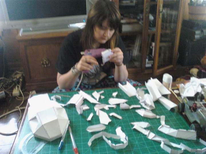 I haven't posted in about 3 weeks due to the insane amount of painting I've been doing. And it didn't help that it rained for a full week in that time! But I did manage to get everything painted and lights installed just in time for East Texas Rose Comic Con! And it paid off-- we won the cosplay contest! I wish I had gotten a picture of my husband and me together at the con in our armor, but I totally forgot! We also didn't end up going to the con in Dallas, since it would have been two cons in a row, we didn't have anyone else to go with, and I wouldn't have finished my armor in time anyway.