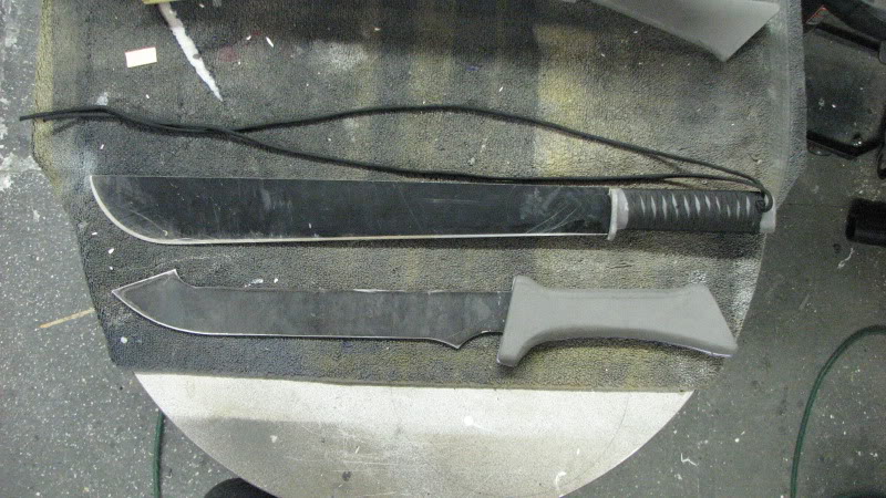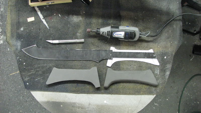 I tried making the Machete once. Didn't use Juliets blueprints though. My evil minion who runs the edged weapons department here cut out the metal with a plasma torch, but he rushed it, so it warped really bad. Looks fantastic thus far. How are you going to go about making the holes in the grip?