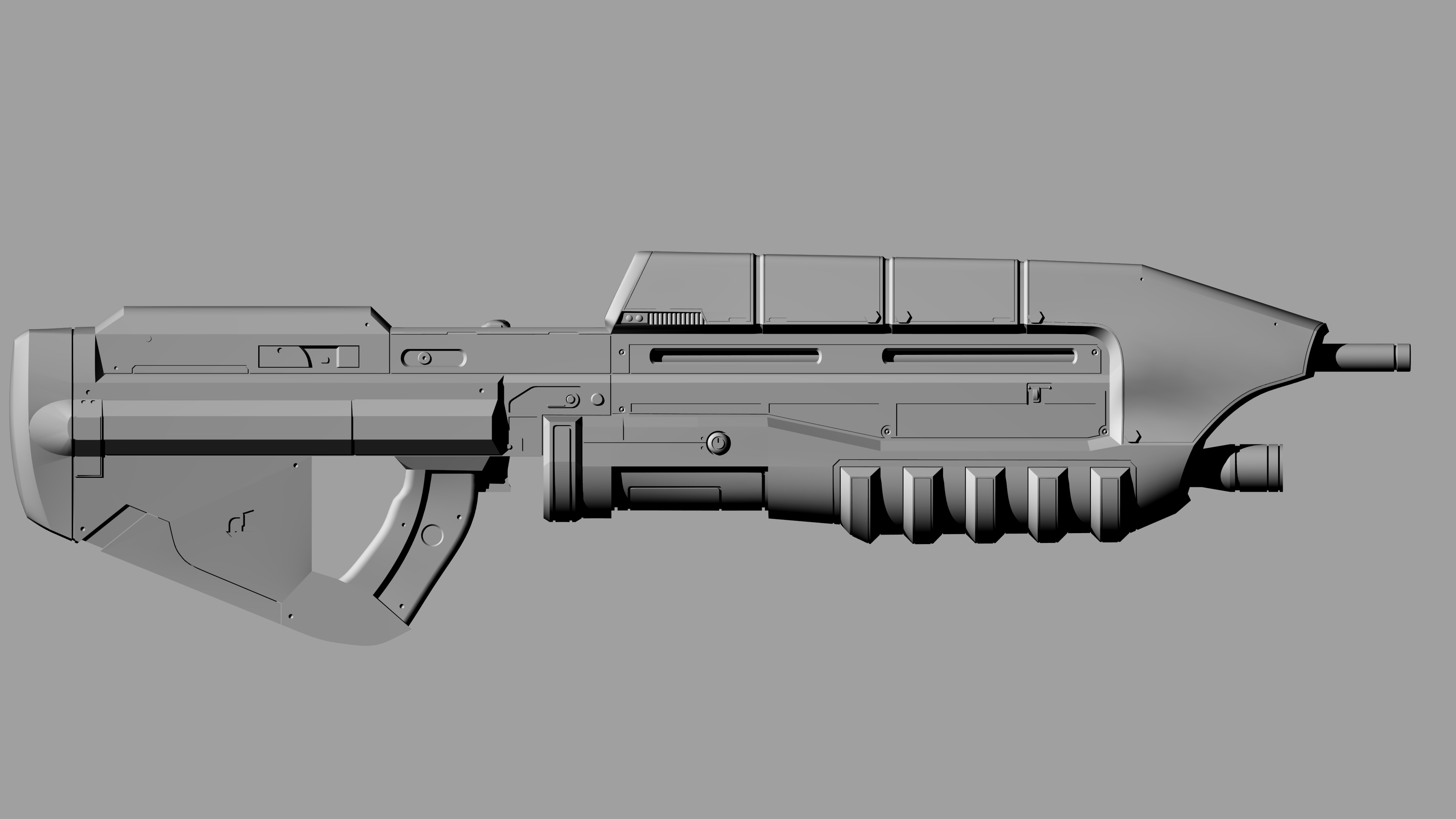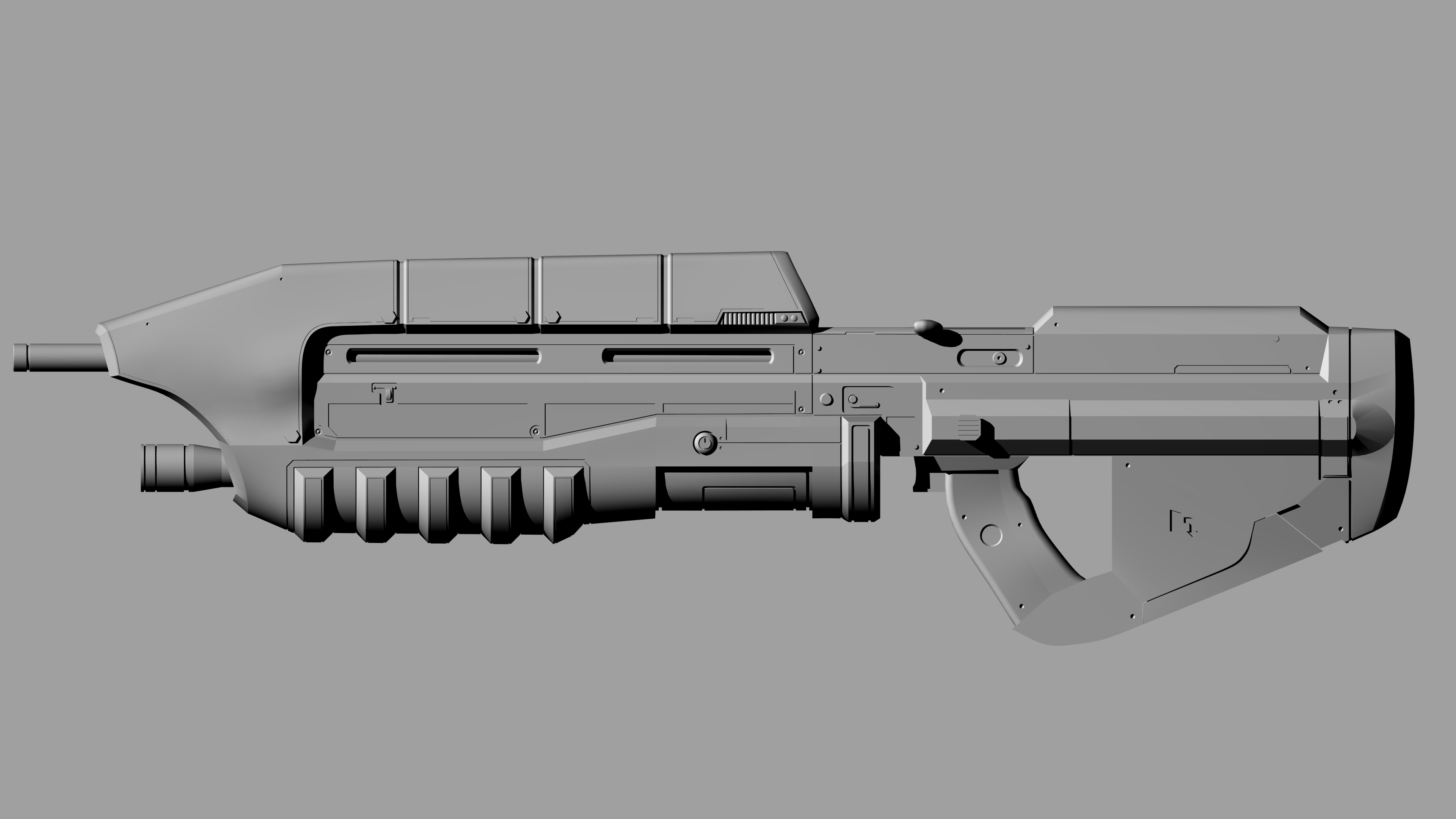 The model will be printed in sections, each sliding over 2-3 pieces of pvc tubing. Having dry-fit the assembly, adhere all the sections together leaving the butt separate. Fill both halves with 2 part expanding ridge foam (going this route allows you to use significantly less printing material both cutting cost and print time). Adhere the butt to rest of the assembly.