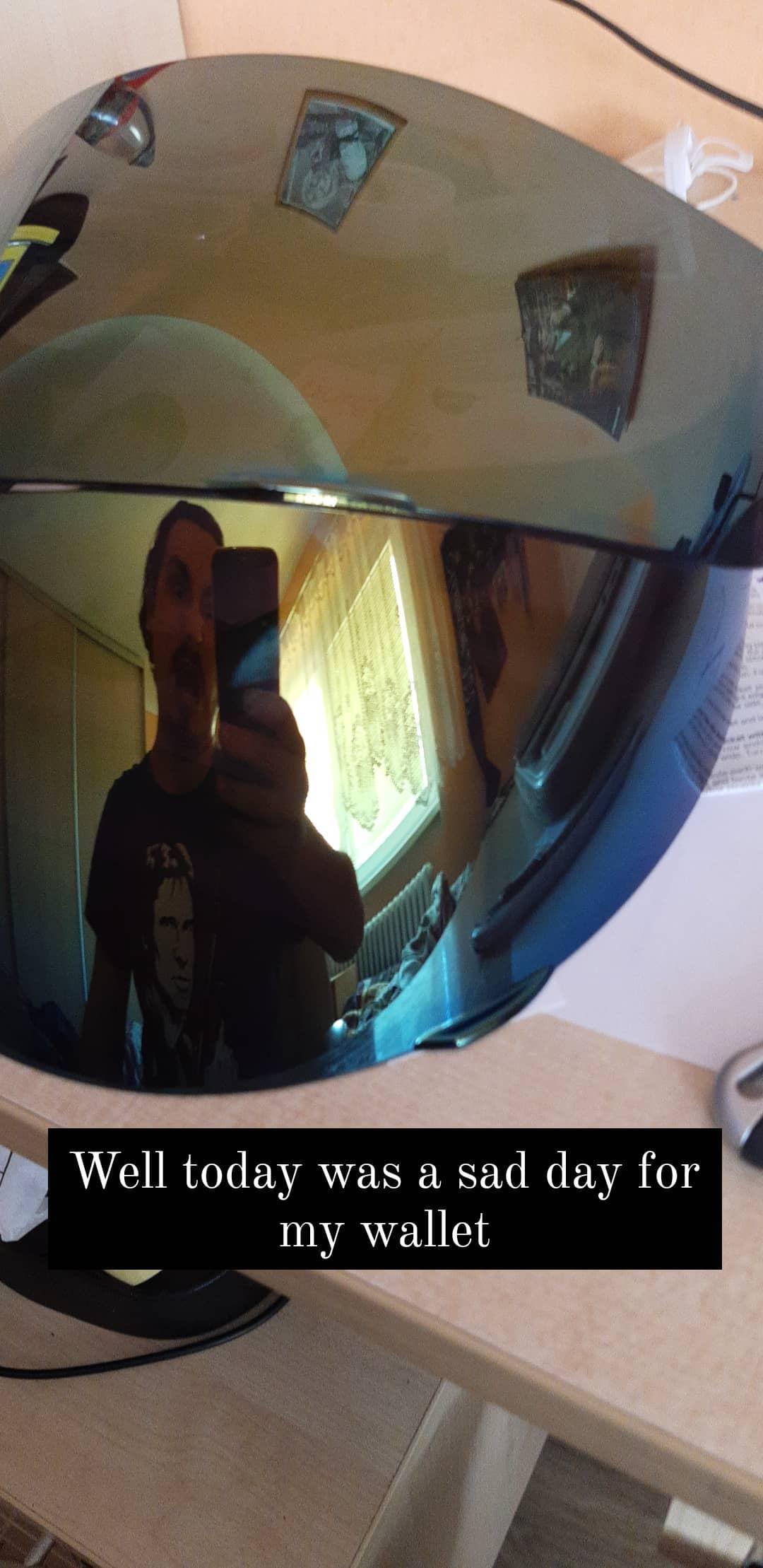 PlanetAlexander I can't leave you hanging just like that, so here are some sneak pics of my visor. I bought two faceshields on AliExpress and I was livid when I found out the shipper is actually shipping from Czech Republic, so I got them in a day! 20€ for them both. But to be honest, I am afraid about cutting one and actually gluing them together, because I'm afraid that the visibility is going to bomb because of glue marks on it. But I'll look into it. View attachment 305886