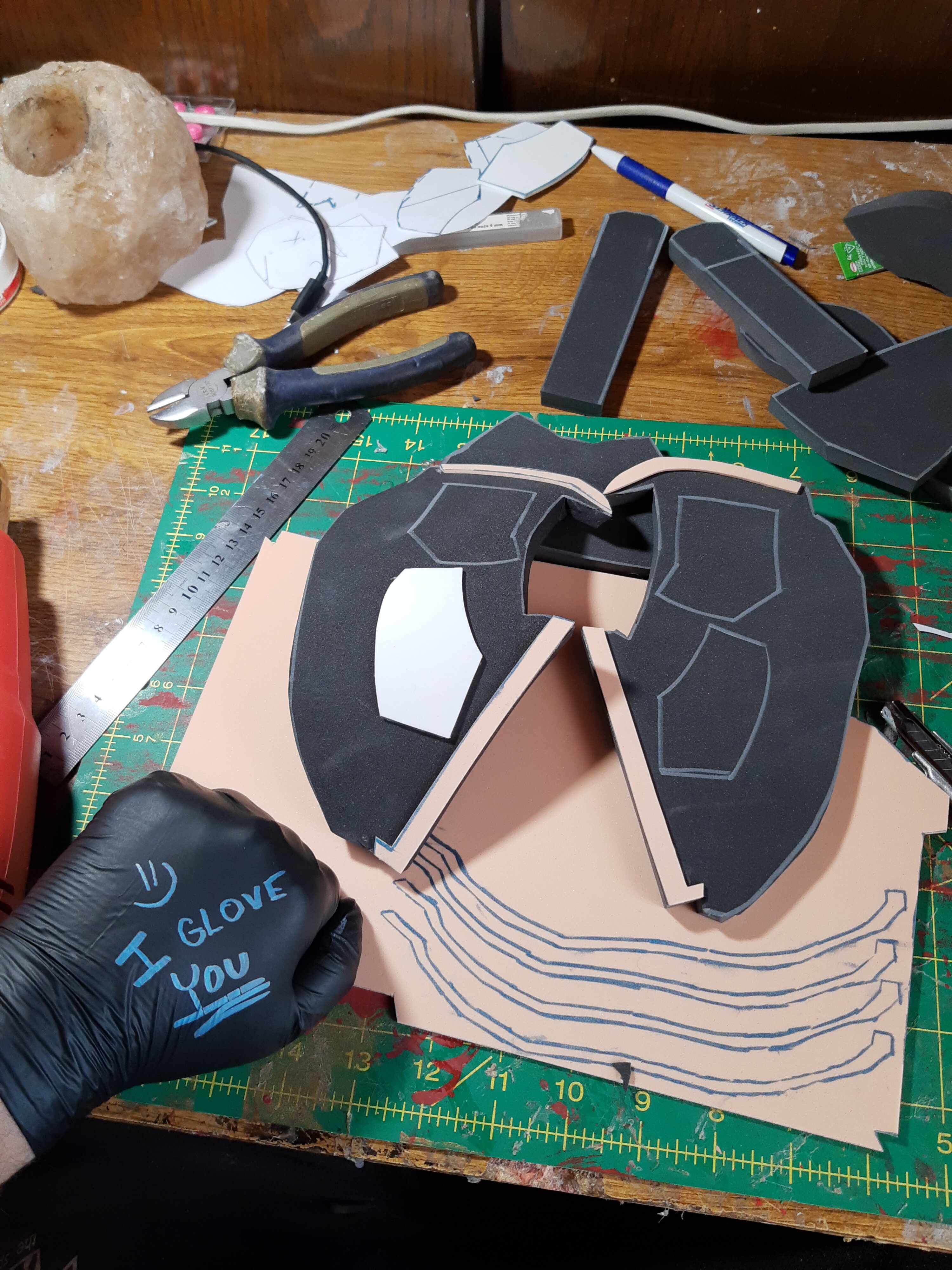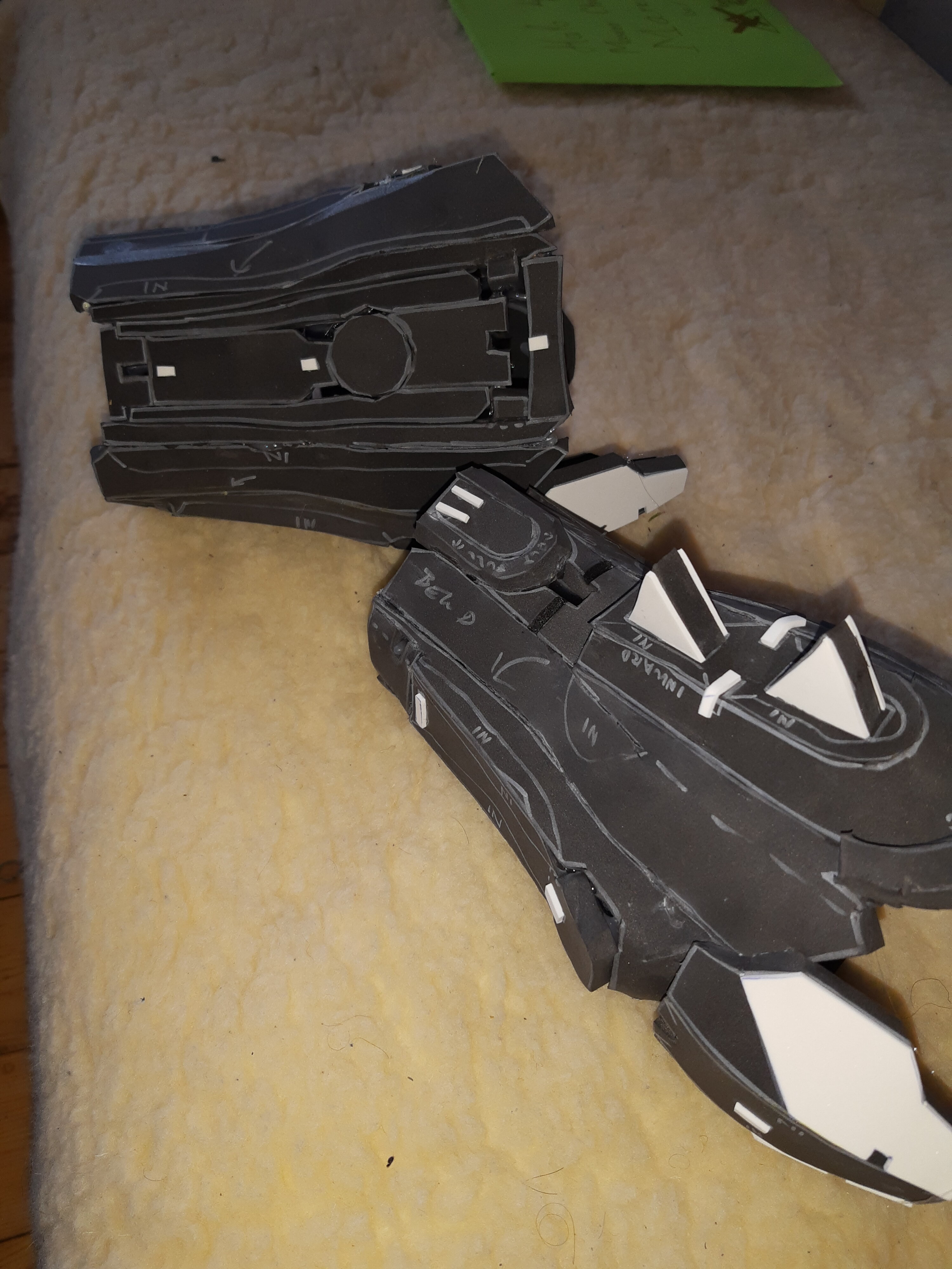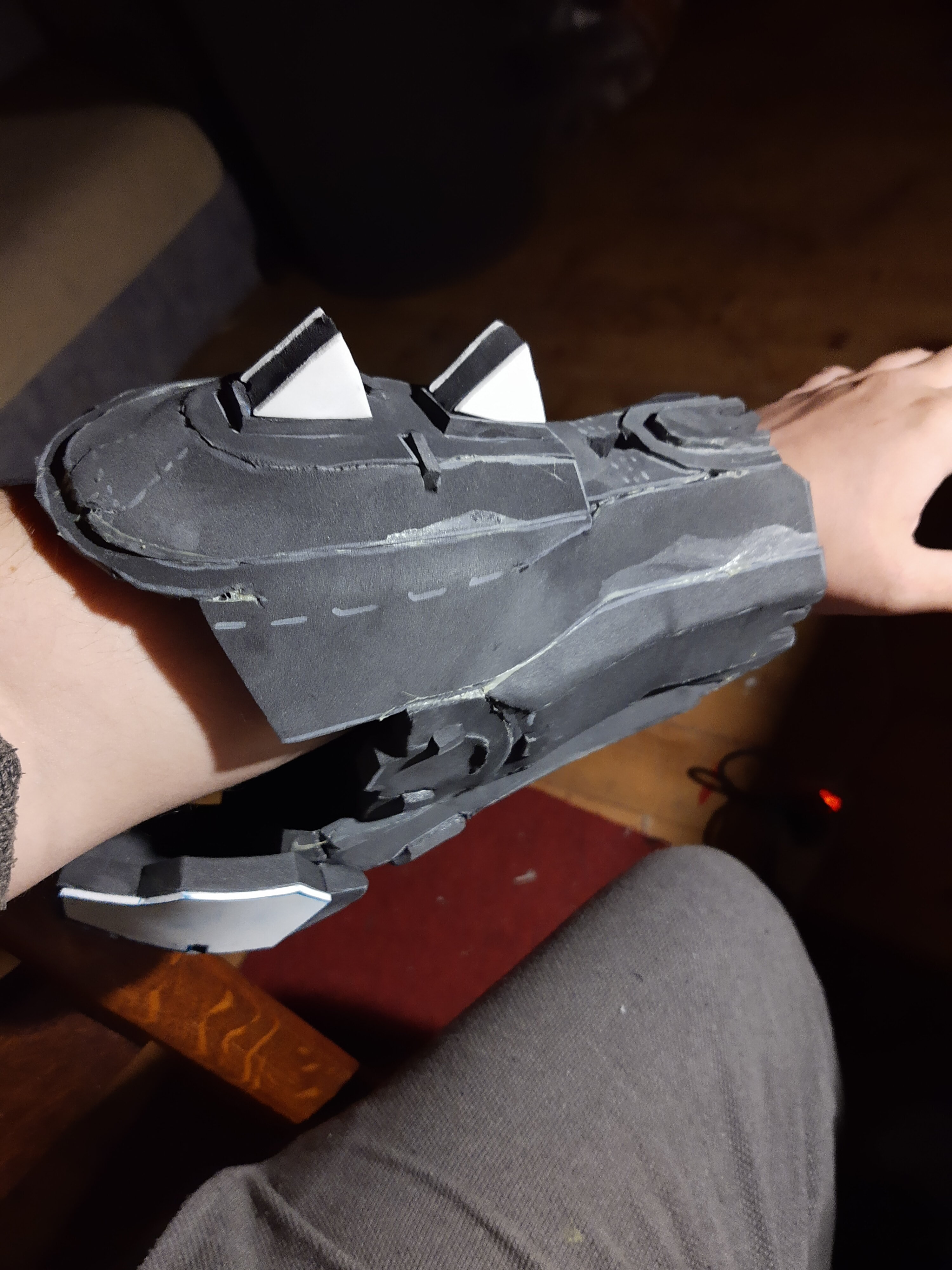Sadly, I'm quite a bit perfectionist, borderline OCD. And when I see details and how they are done, I NEED them. It's funny, whenever I put on a cosplay which I cuss about, once I wear it, my confidence shoots up like I am a literal god . Luckily, I have some experience with foam thanks to the fact I built Iron man Armor last year (Mark 4, to be exact). Ofc I found pattern and followed videos, but it was a nice exercise to work on my V-groove cuts, inward and outward cuts. After building the first piece of forearm and rescaling a little, I'm probably gonna do version 2.0. with the superglue and hot glue combo, because there's a lot of small pieces, because contact cement takes 5-10 mins before I can connect the pieces (really fine glue for good price, but ofc the crafting then takes a lot more of time). At the moment I feel kinda demotivated and kinda sad, even though I know no one who managed to nail a complicated piece like that on the first try (the inward cuts in all the arches really kicked my ass). Once the forearm is gonna fit, I'll just slap it with some sandpaper to clear the connections.