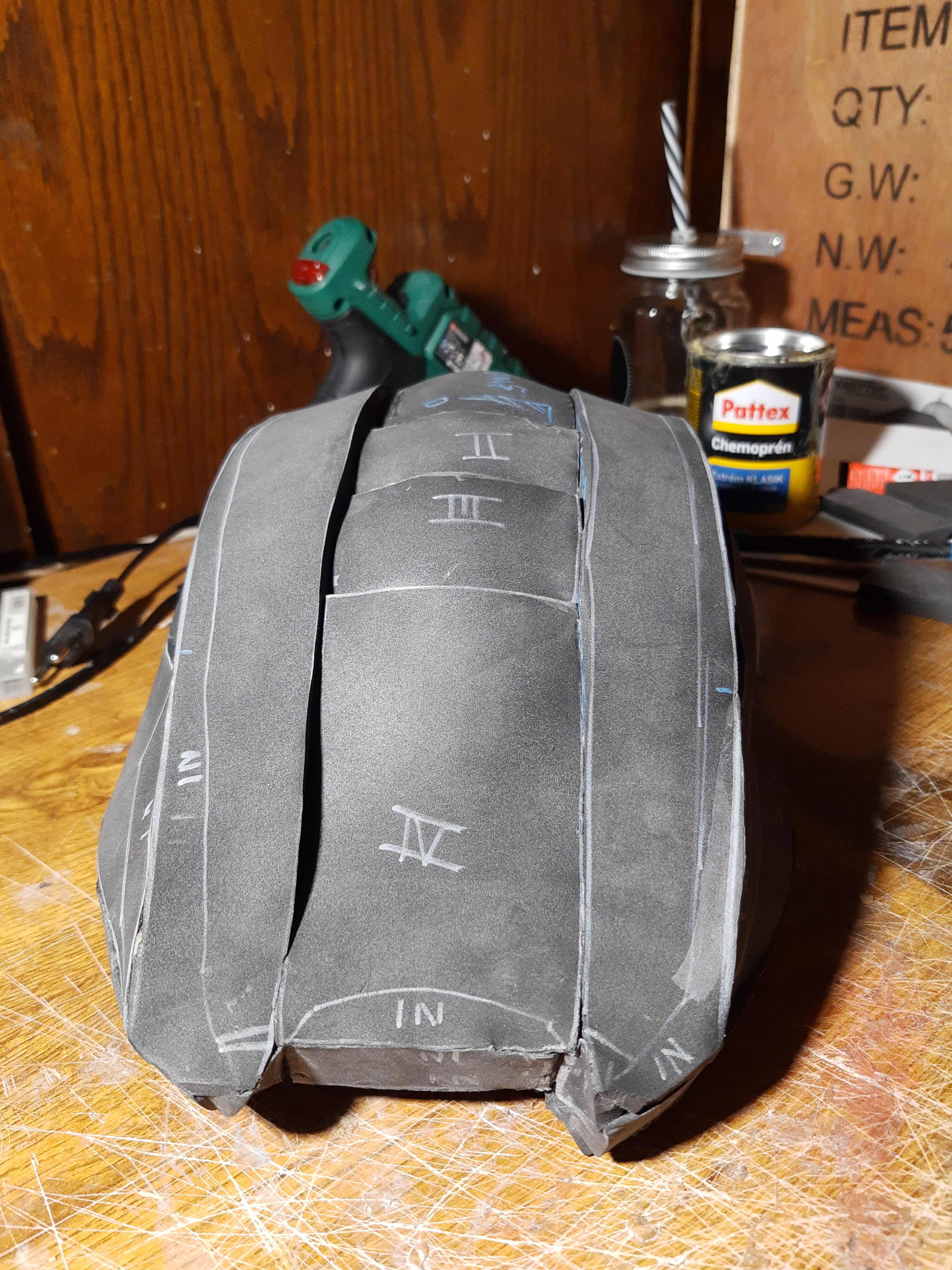 The unfinished helmet has left this world. Sadly, it got utterly destroyed as I was working on adding the back pieces.