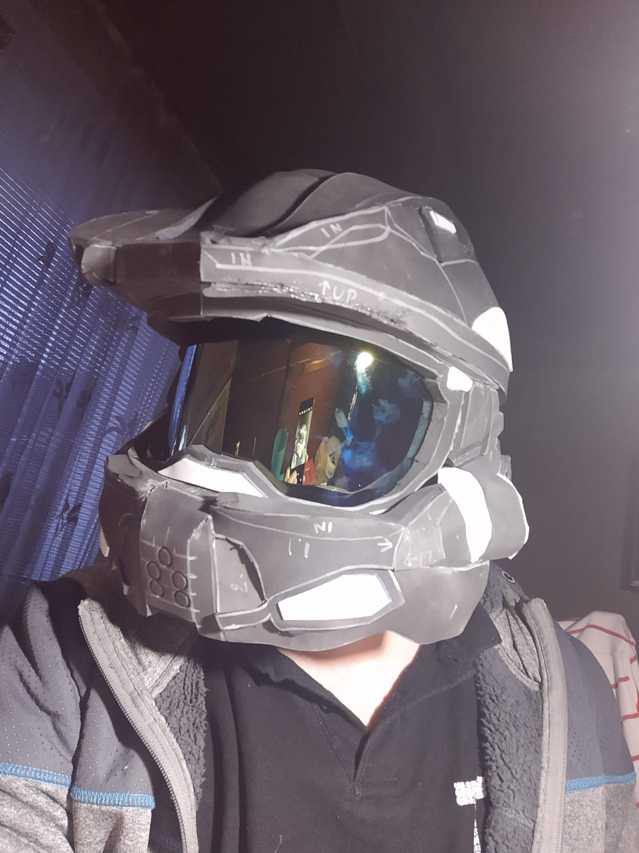 But I'm gonna hit up a lot of people and try to add some badass lights on the helmet (for the walks to the hotel after a few late drinks) and maybe, just maybe, add a small blue light to the back of the helmet, because that's where Cortana is! I'll look into that. You know how it goes. Lights > actual skill. I have neither. So let's at least put on a show