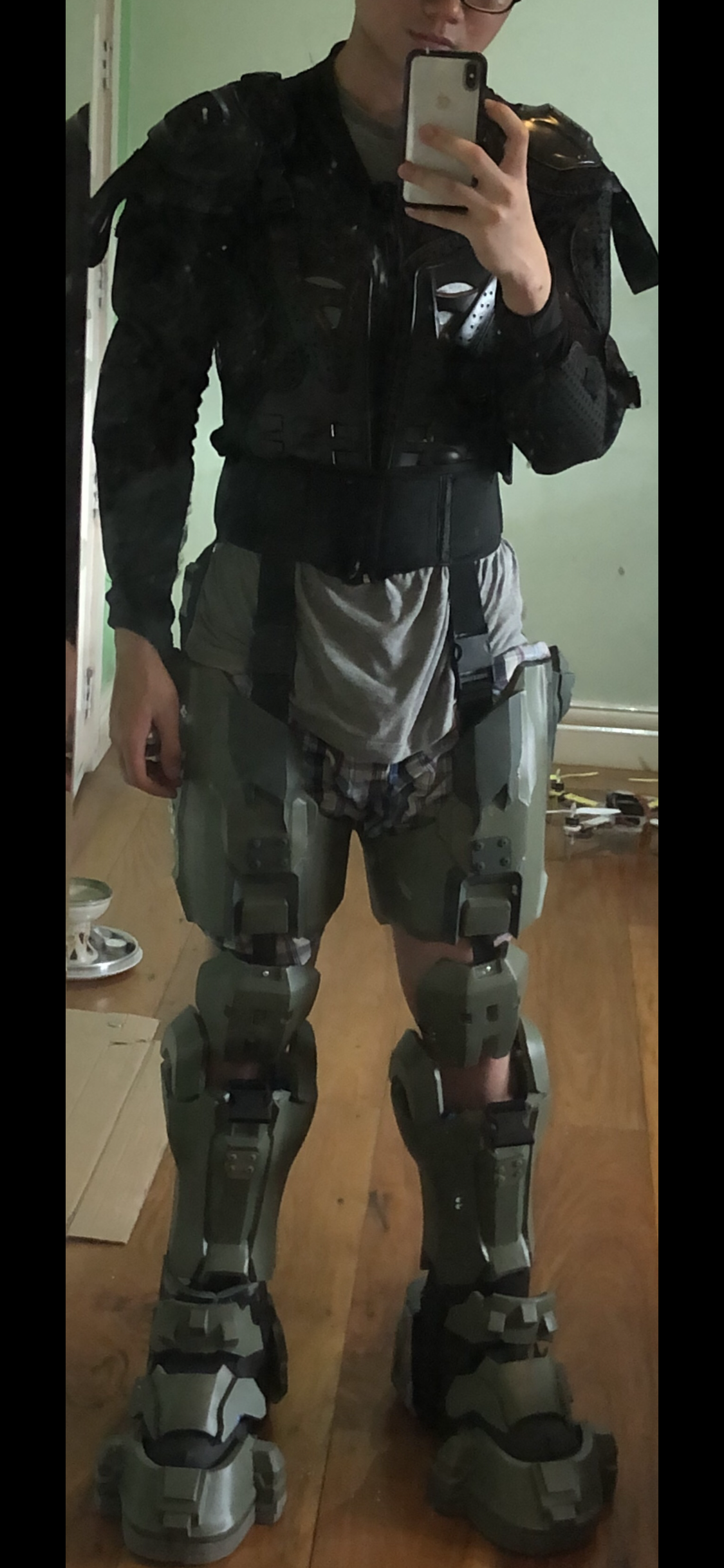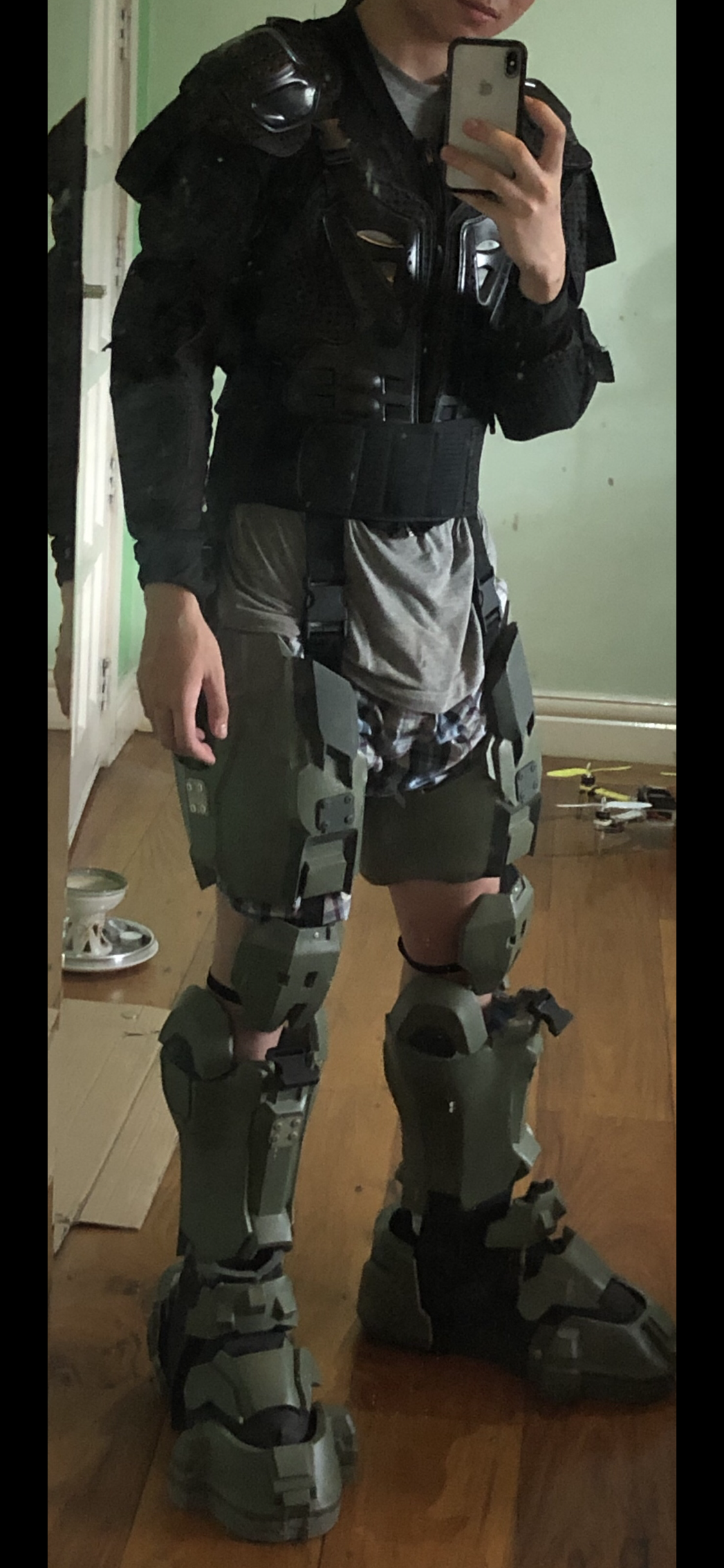 And here is me wearing the armor. Bicep and forearm armor fits pretty good, chest piece doesn´t look that bad at all (I will be wearing a 1/2" undersuit so It may help me look bulkier) however, what I really like about master chief chest armor It´s how It has a really snug fit so, although I like the look of this one I may do It again . The most awkward looking piece is the thigh. That´s my unexperienced opinion so, I´m looking forward to reading from your view!! (Please, dont be gentle with your opinion, I know that perfection doesn´t exist but I want to get as close as I can to It!!)