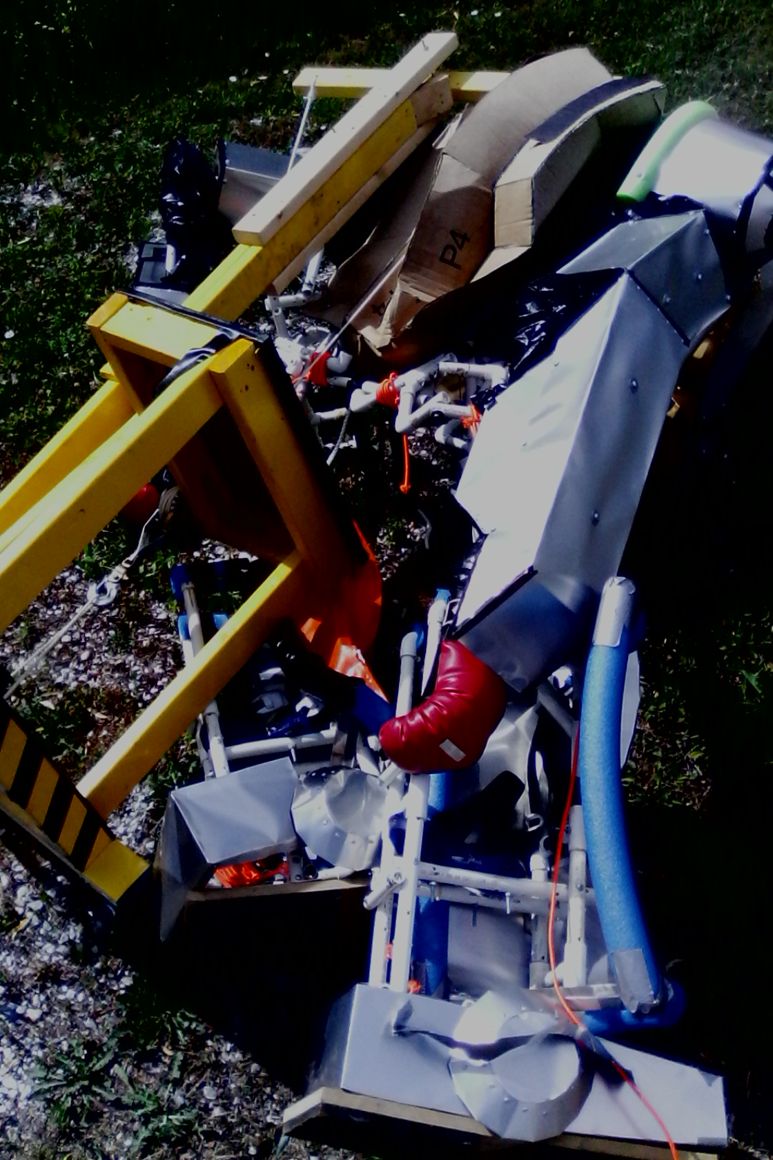 The shins gave out: pop rivets and gorilla glue won't last.