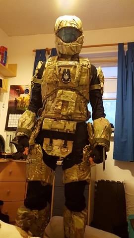 Just to see what it would look like, I tried the MTP camoflauge underneath the armour, and I didn't like it much (however I used it for a photoshoot later that day). Also, the foam connecting the shoulders to me has since been covered.