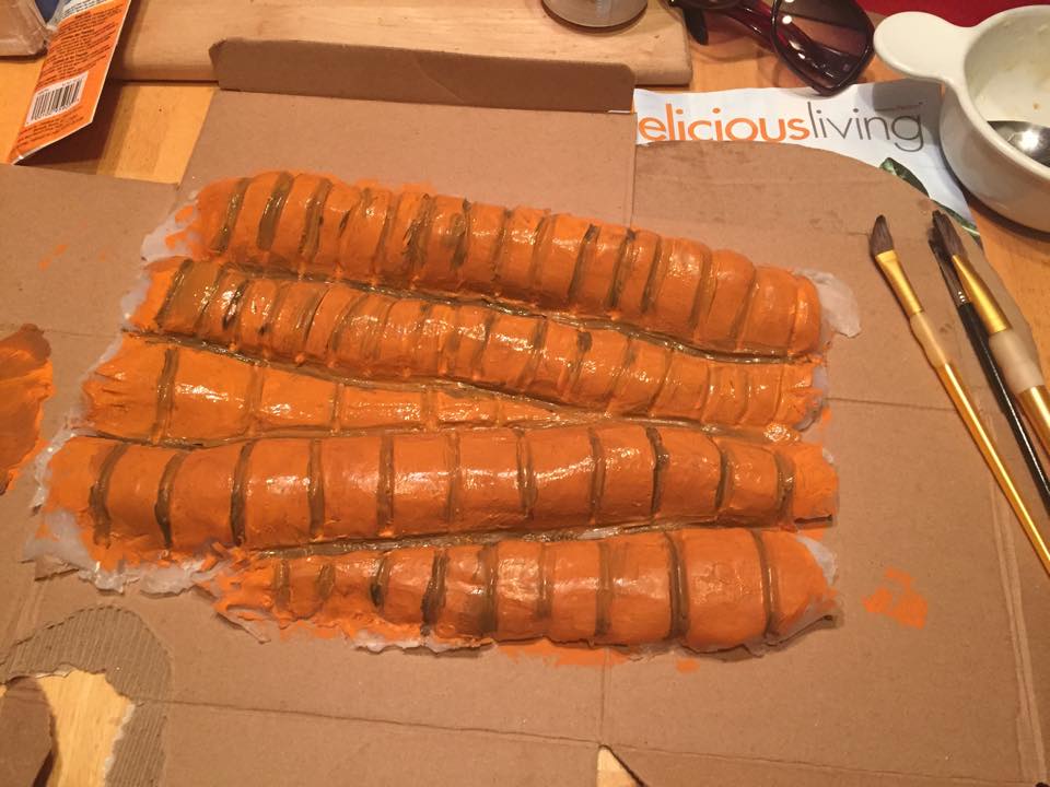 During that time, we were able to cast all of the worms that we could (we ran out of silicone) and we tested a glossy enamel spray paint over the painted worms to see if it gave the worms the appropriate sheen. We are satisfied with the results.