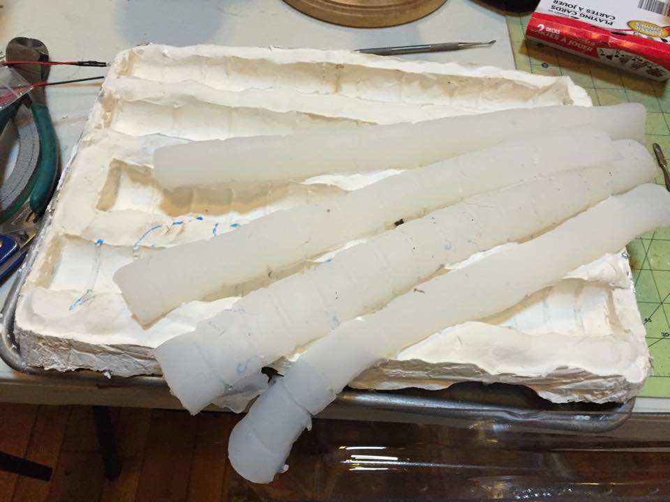 Starting today, the colony has begun casting the worms out of silicone from our molds we made from Plaster of Paris and they are coming out beautifully,