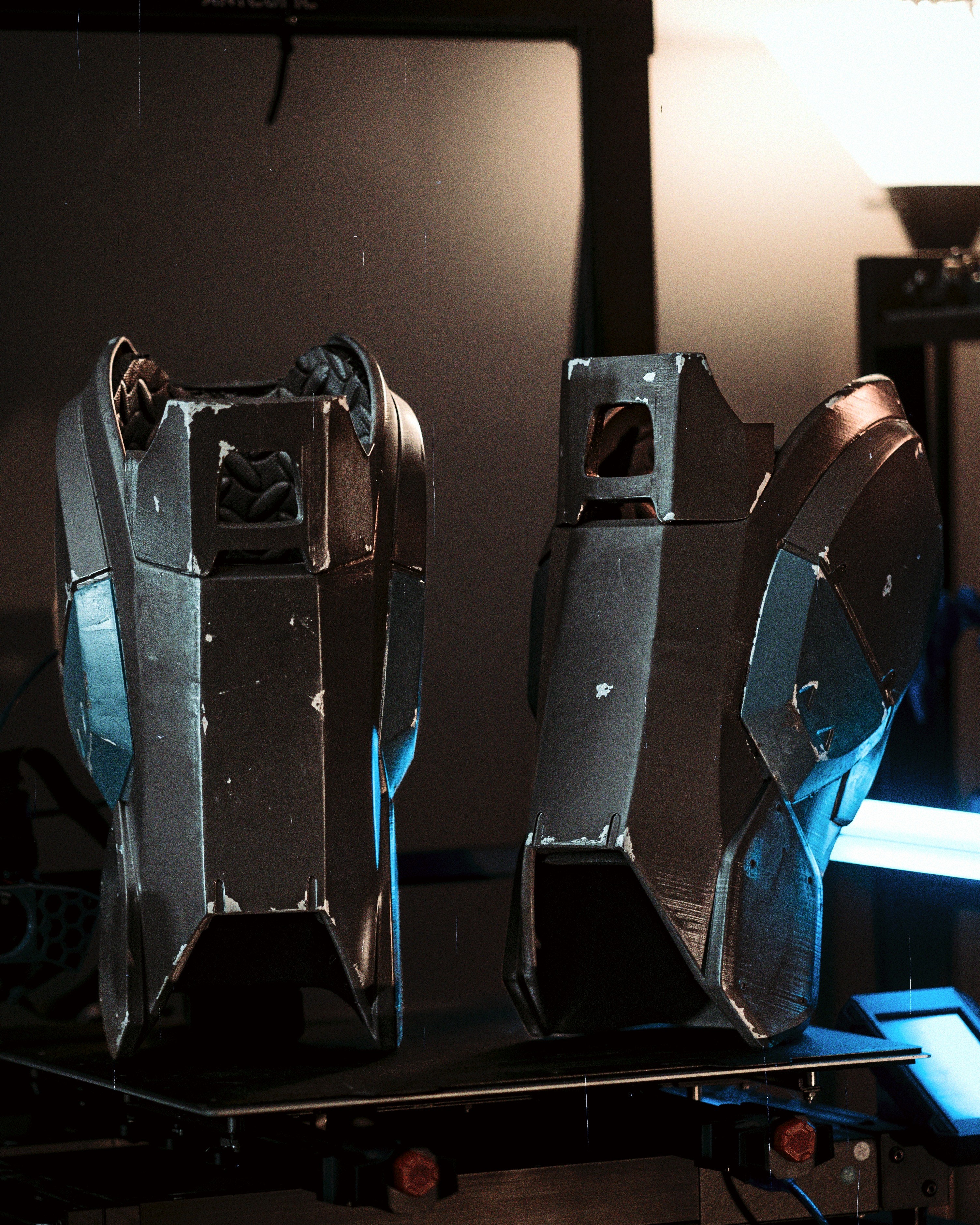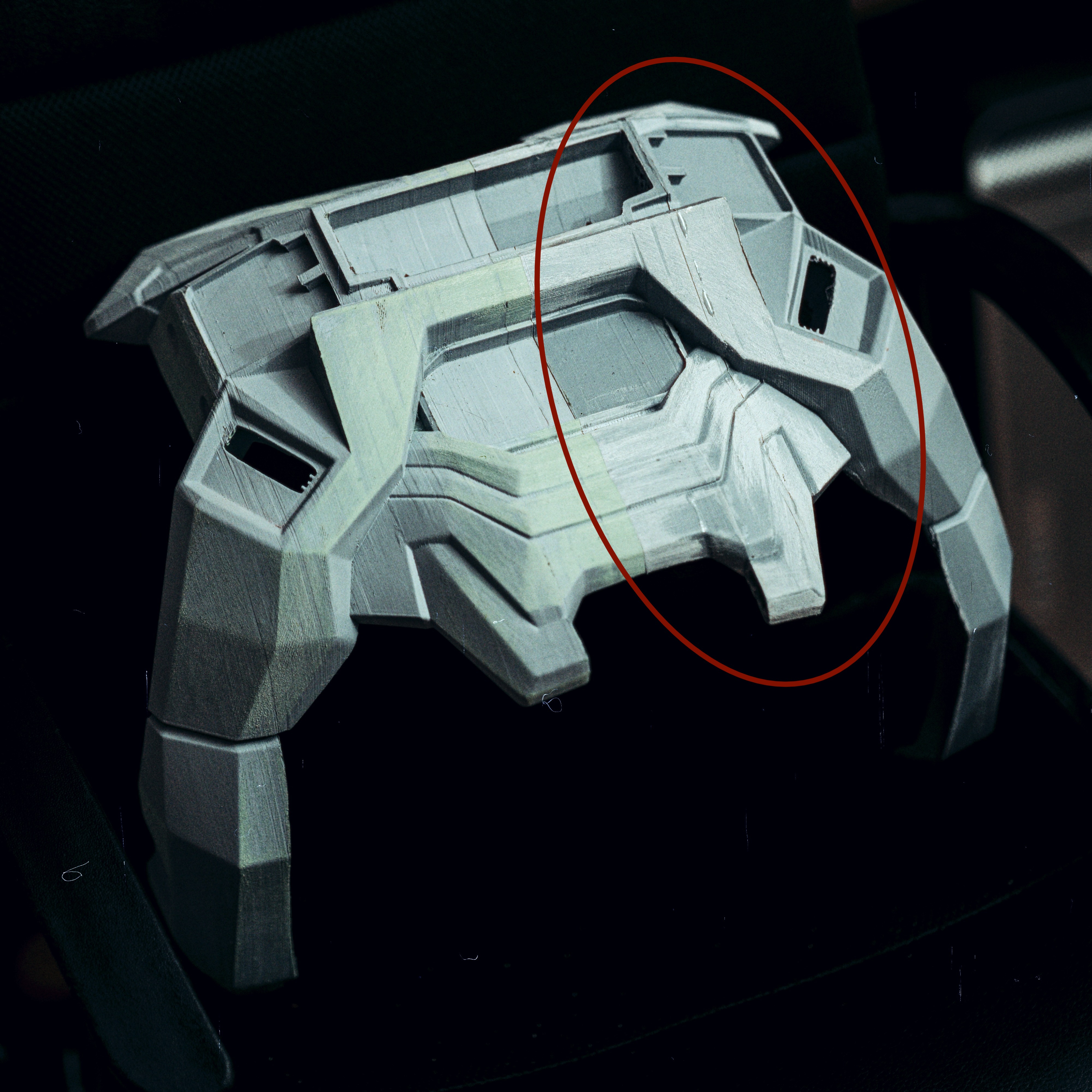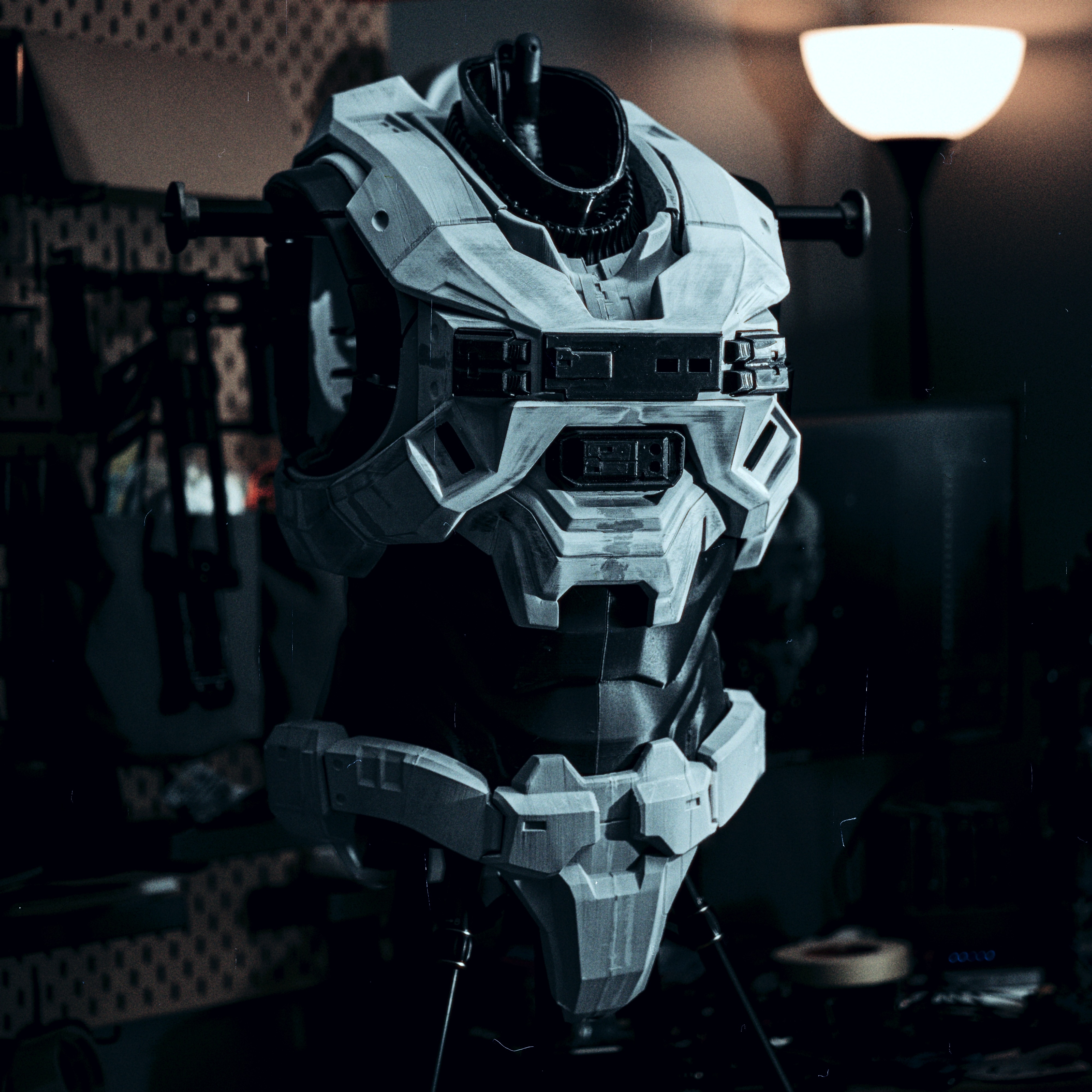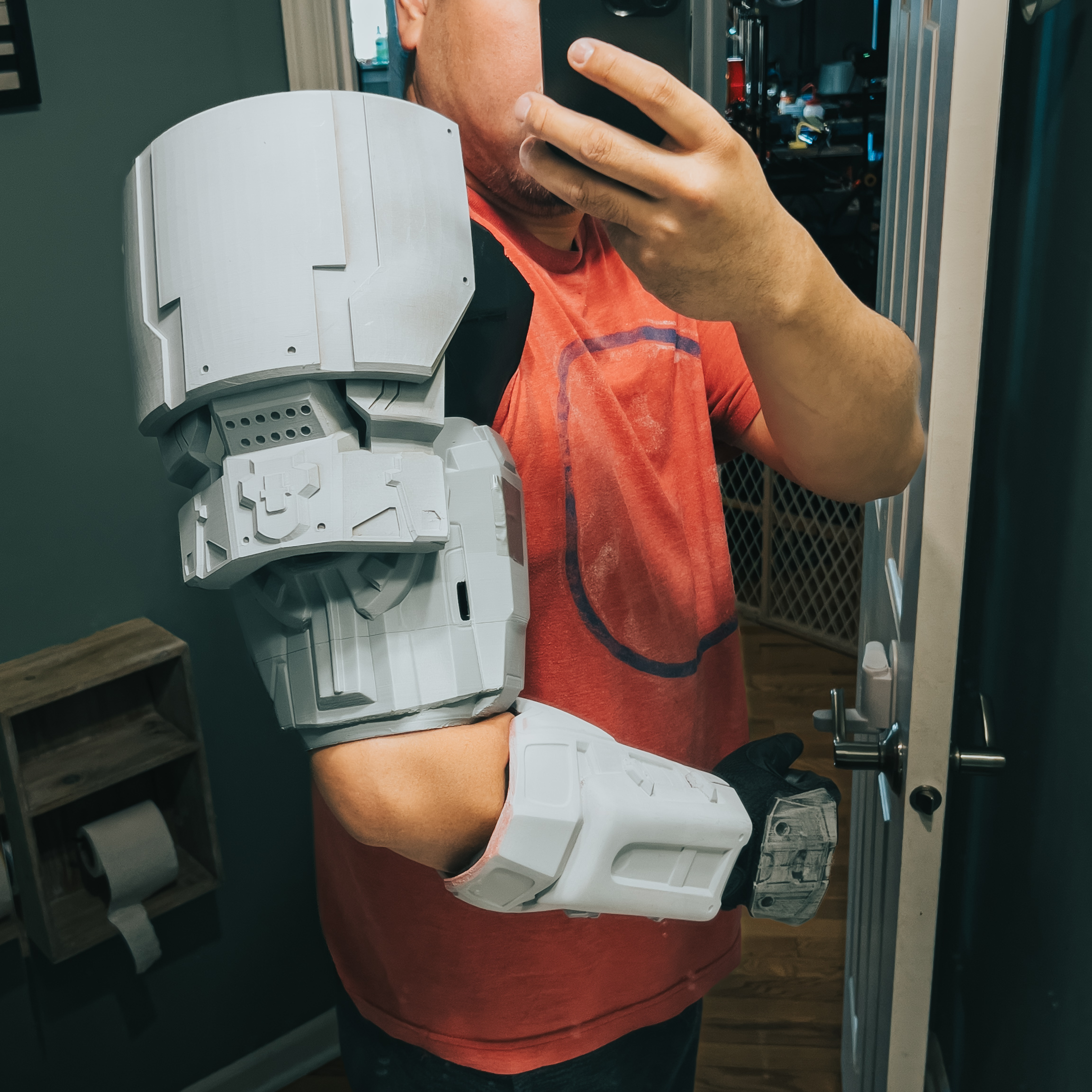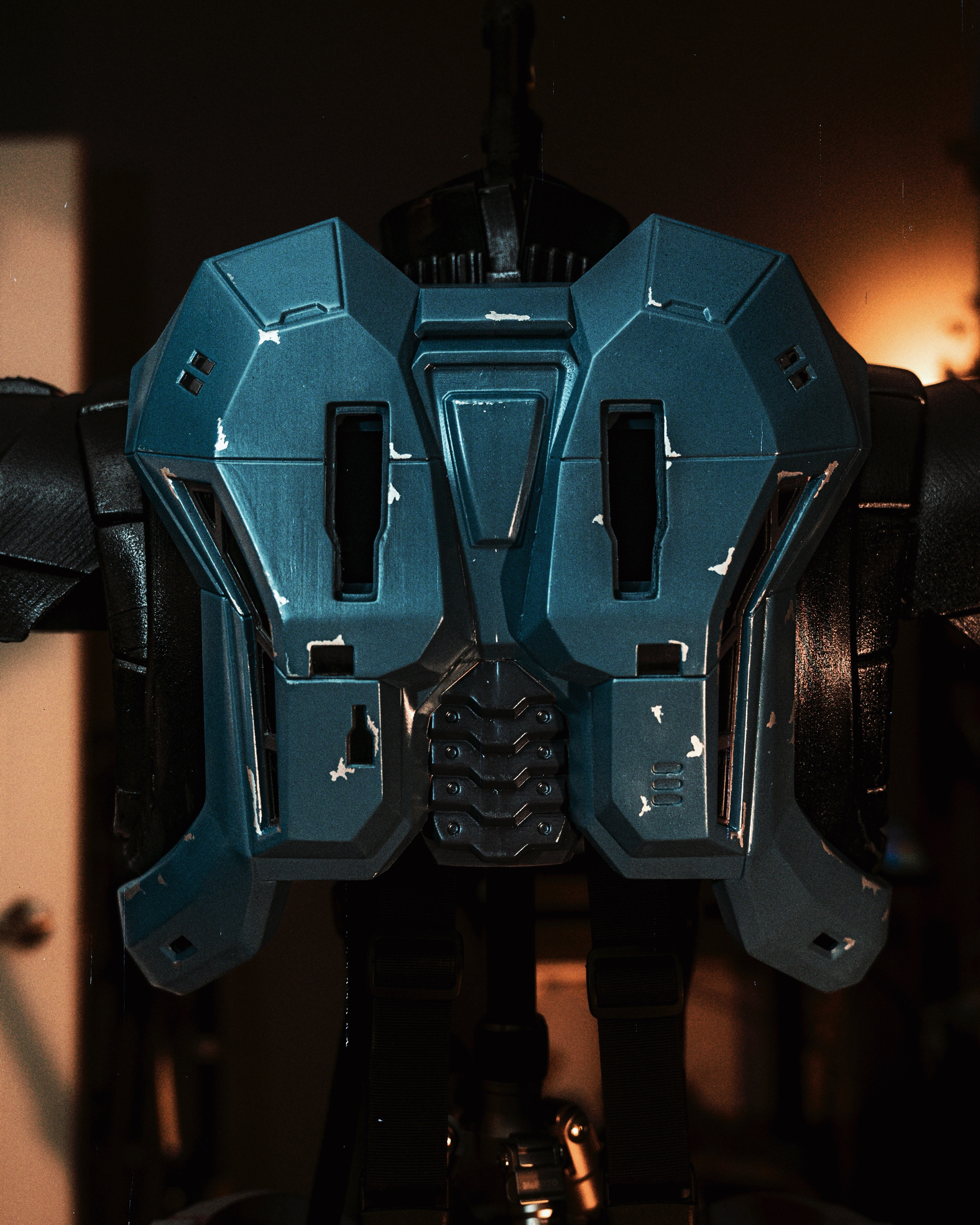 I had an unfortunate accident involving my chest piece. I dropped it while standing and it split along a seam and suffered a few more cracks around that area. It was one of the first pieces I'd printed before I'd really figured my desired settings out, so it was already weak to begin with. Also, you can see that the print quality isn't stellar, which is par for the course for my Kobra Max despite way too many hours of calibrating/repair.