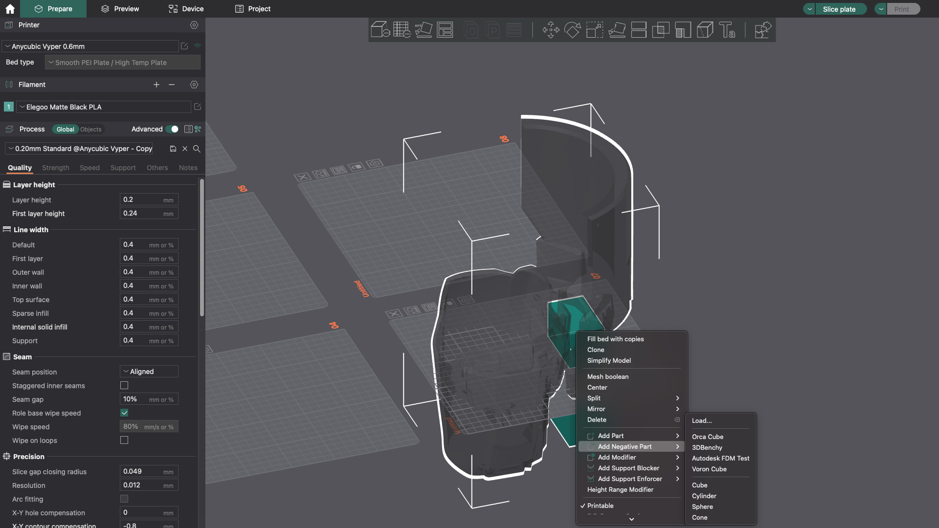 I decided to start reprinting some pieces for increased strength. First up was the thighs, which I felt were too thin and had too much give for my taste. It also just happens to be the part of the suit that gets the most stress, oddly enough. I doubled up on the wall count so there are no voids in the shell at all.