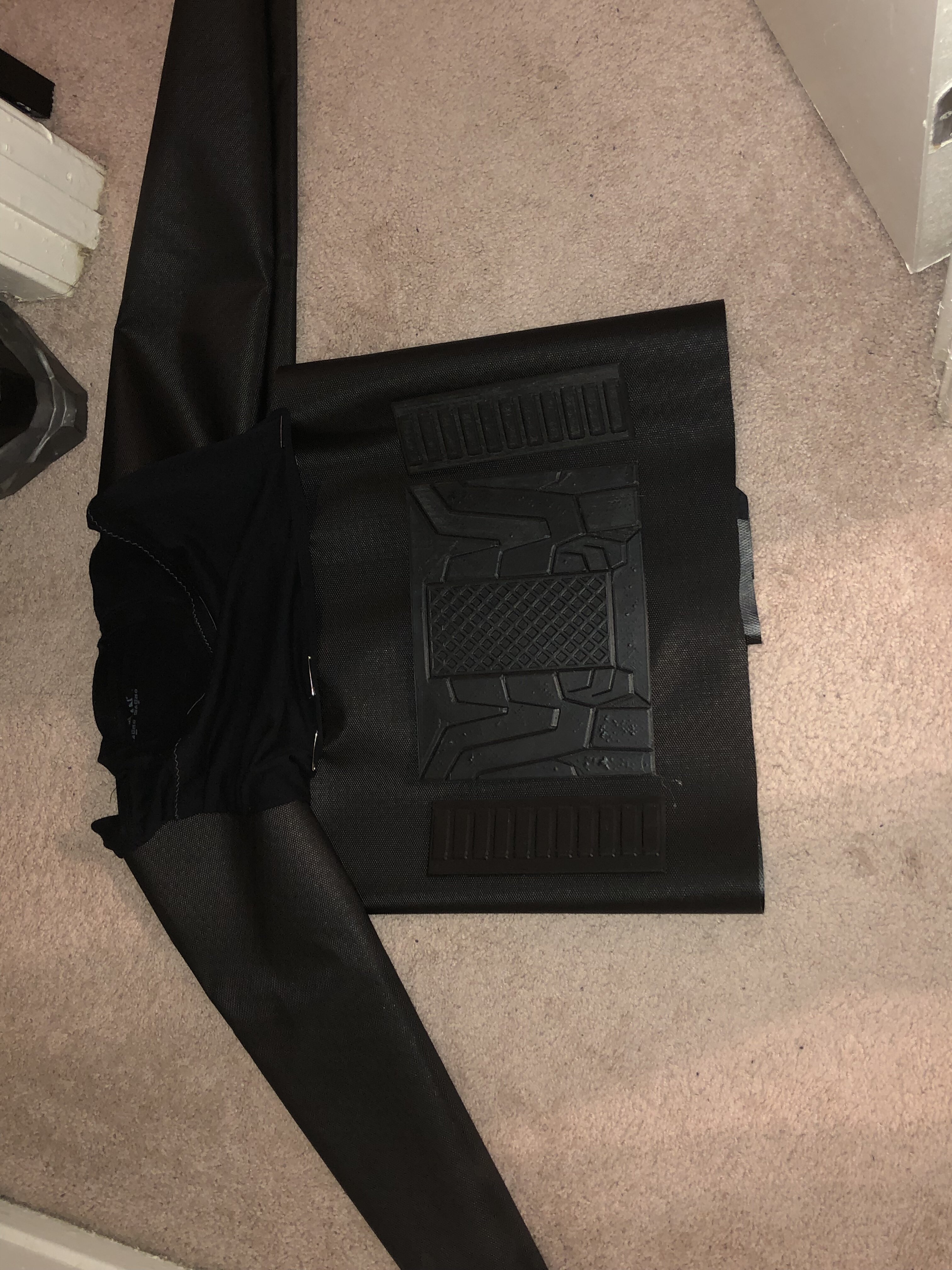 2) Attaching the two halves of the torso, chest piece to the back piece, after I cut it down the middle.