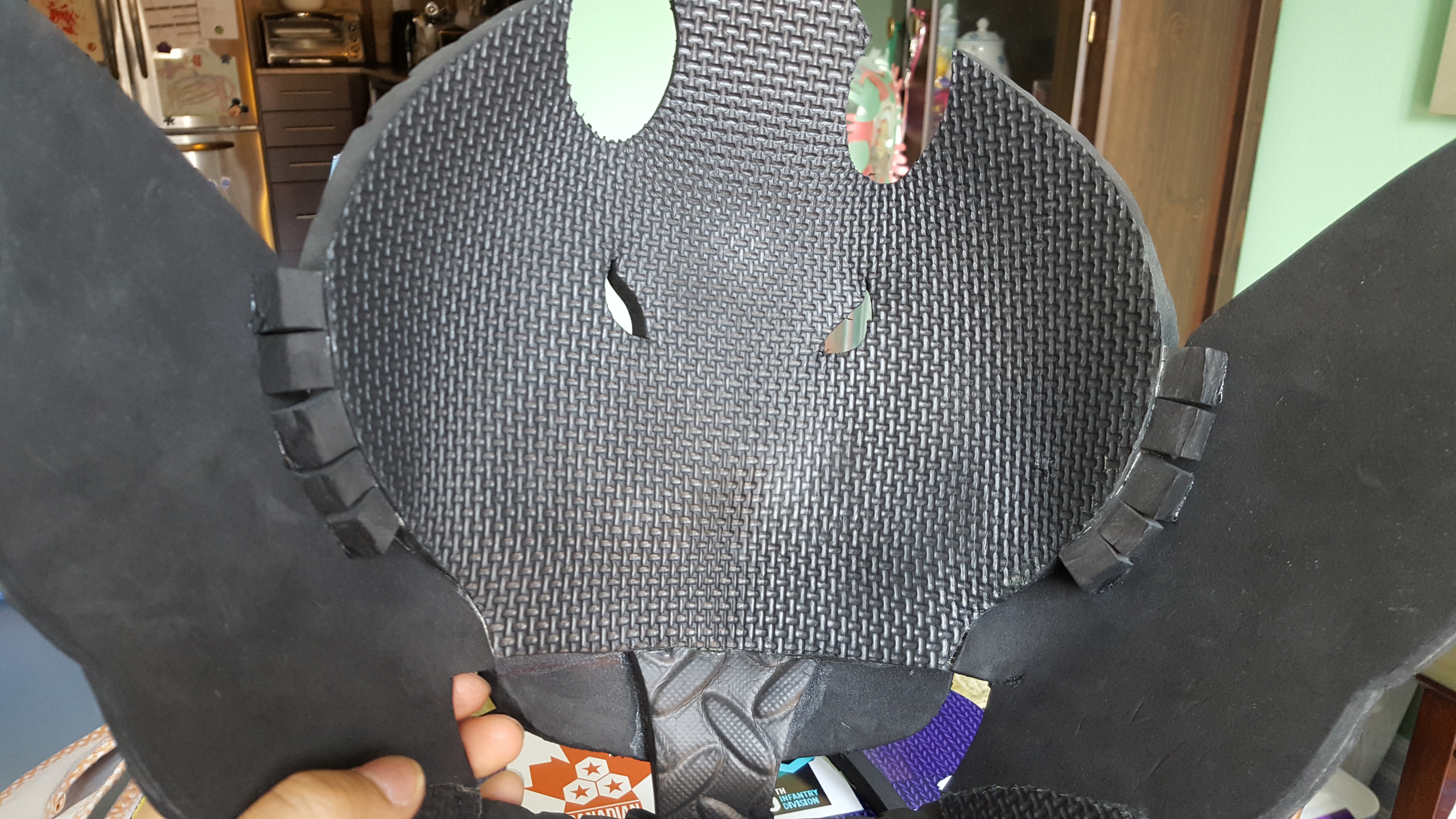 Got the top part attached. I ended up using little cubes of foam on the inside of the ear. At firs there were only 3 on eat side, then I added a couple of more just to make sure it would hold.