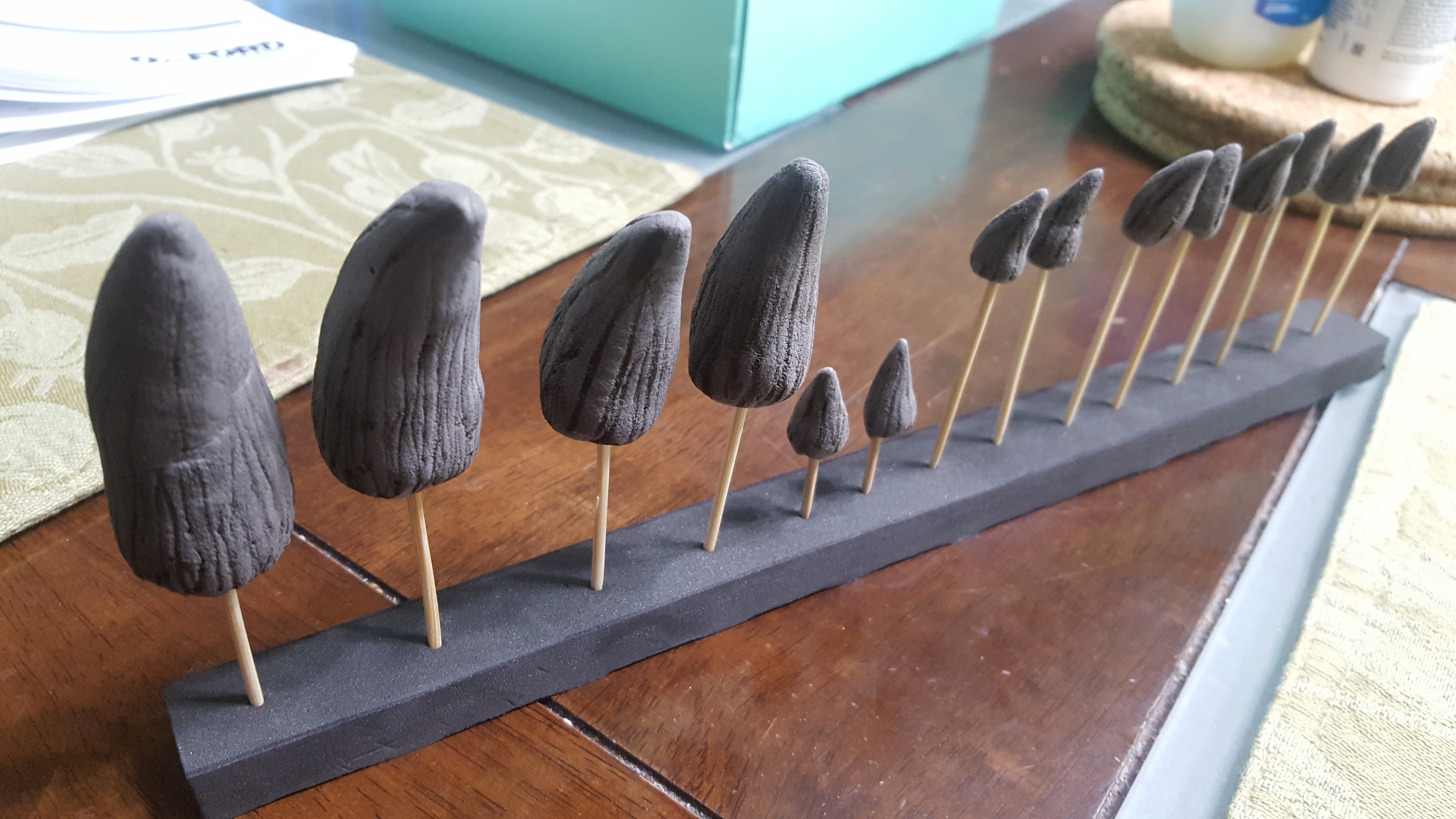 After 48 hour cure time, the teeth were sanded and then detailed with wood burner. Foam clay doesnt melt like eva foam. The lines aren't as clean.
