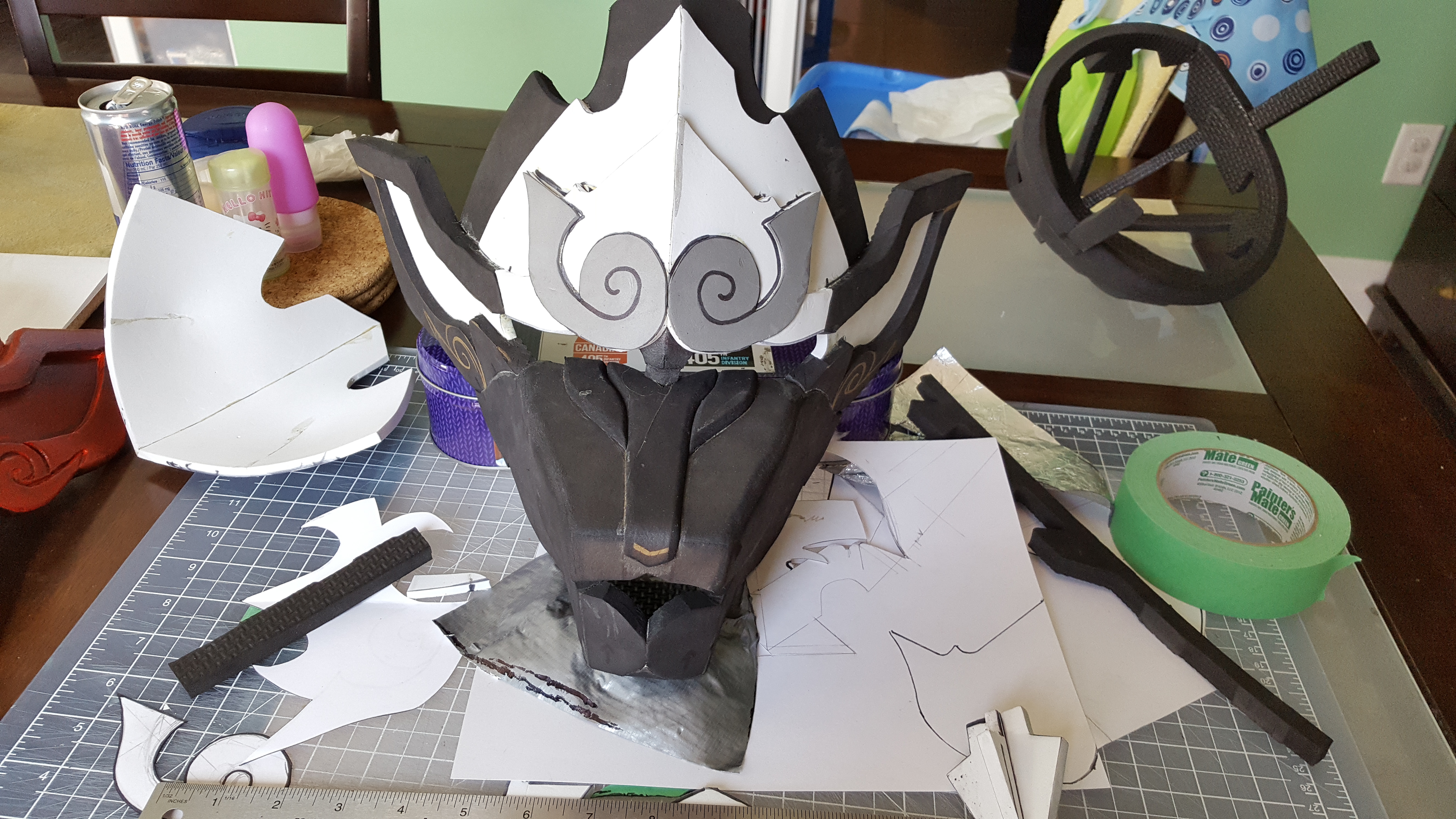 A 7ft sword, I would make the handle detachable, since it is pvc it would be easy to take it off and on, just make sure the foam is on there good, and my Monster Hunter World is the fudgin' Glavenus Set from specifically Monster Hunter X Only got the helmet done right now, I will start that thread today or tomorrow or whenever I get back to it!