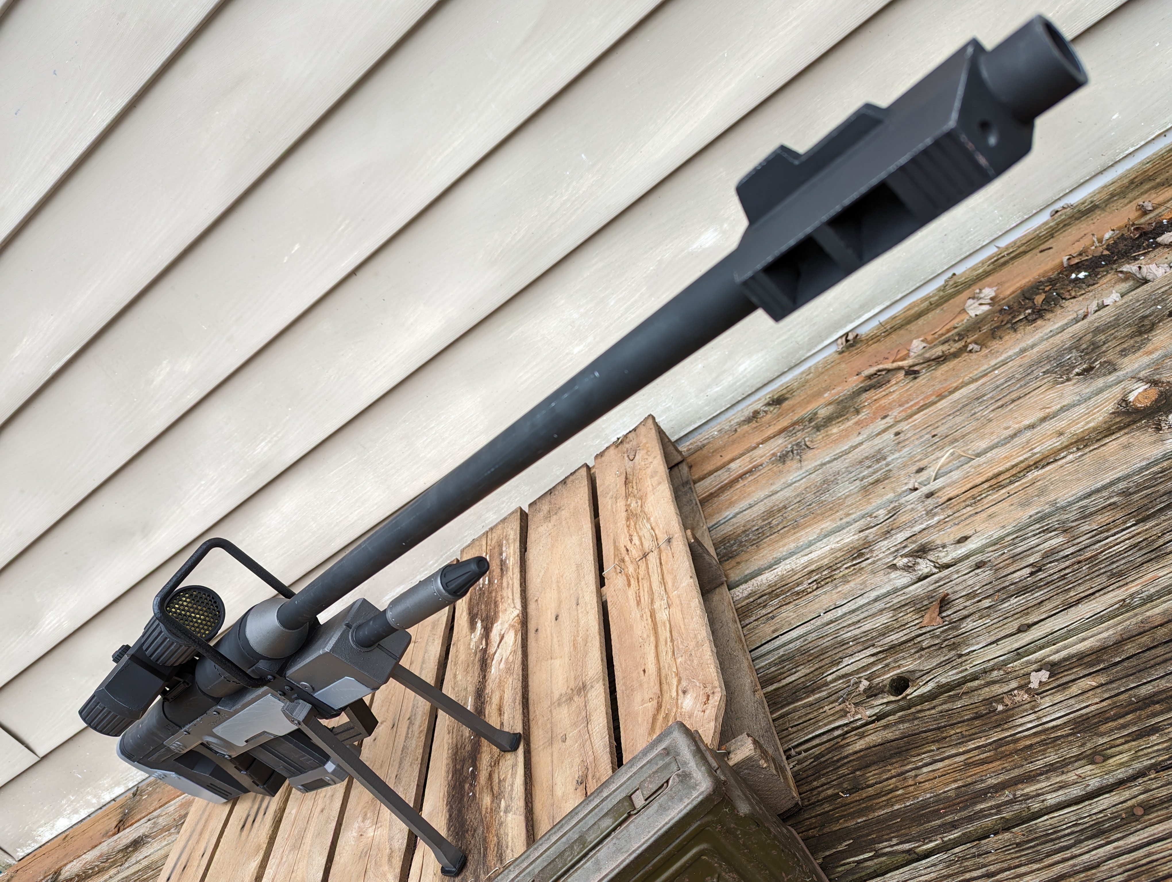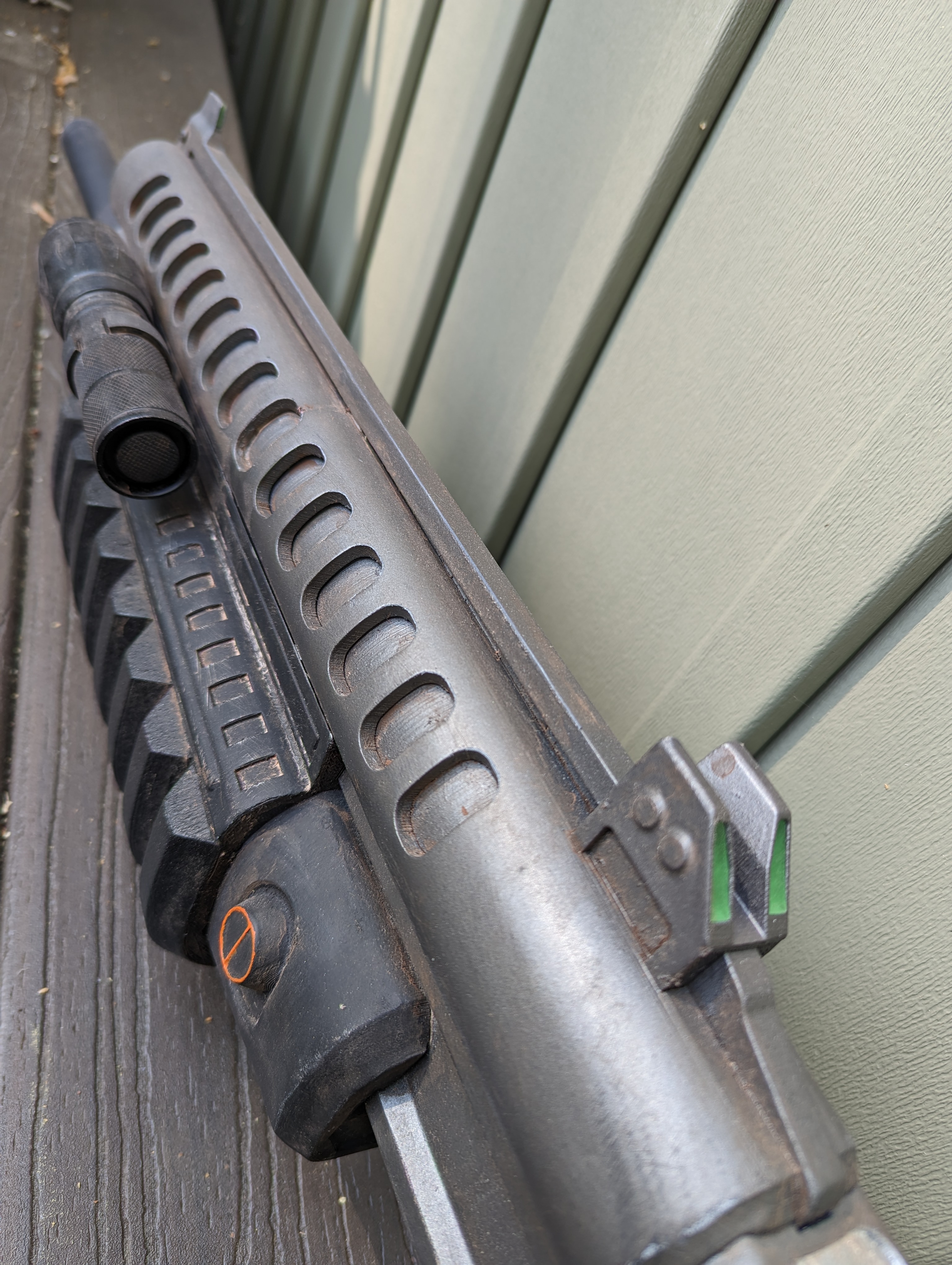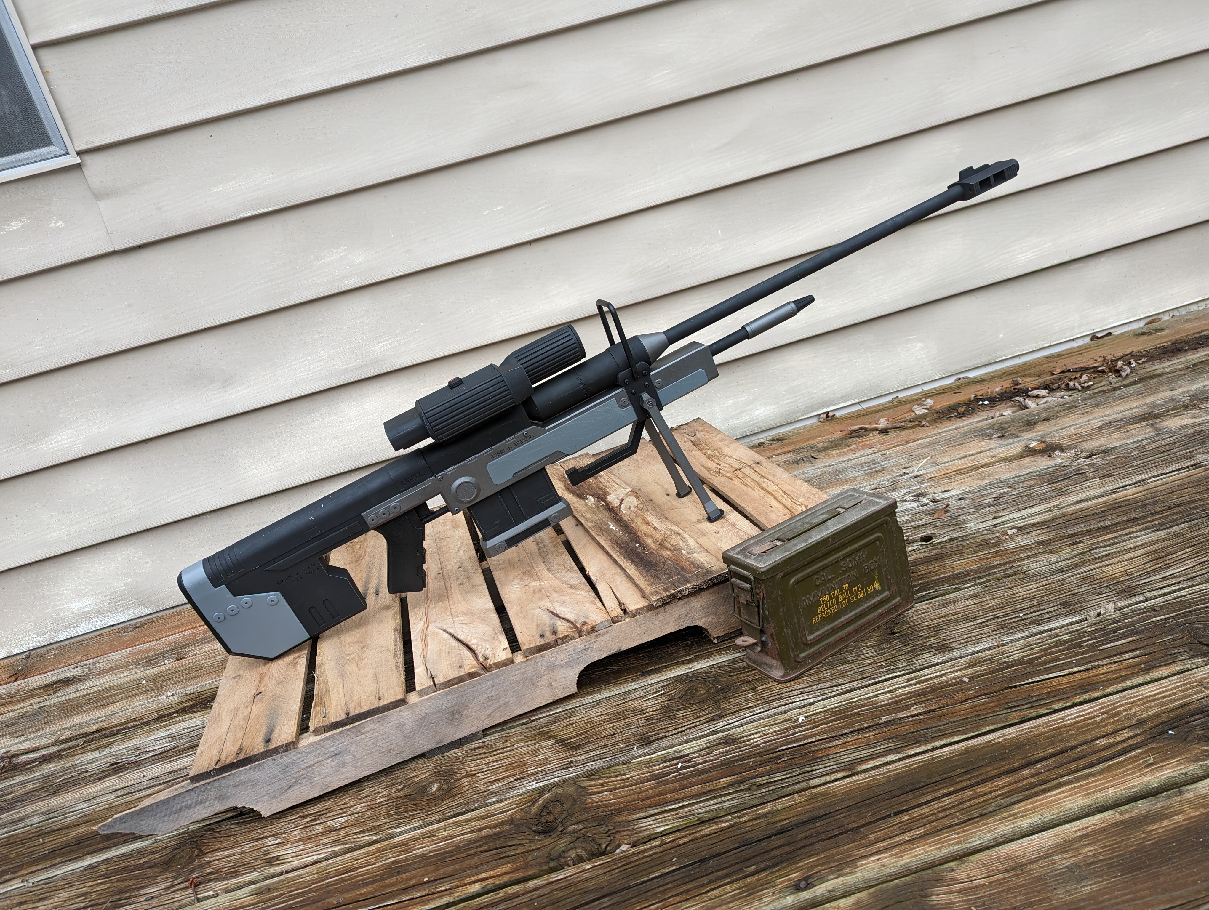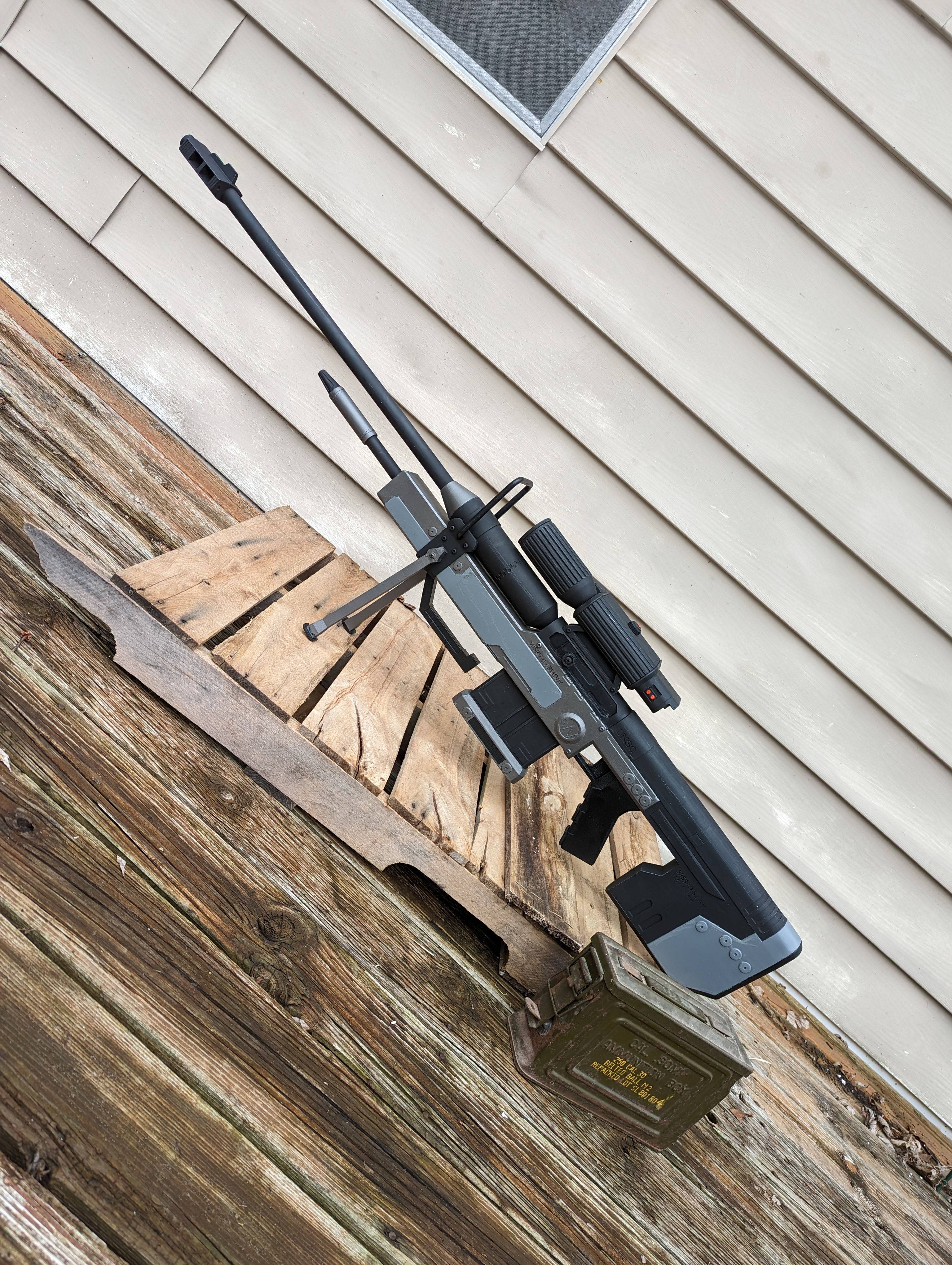 Hello all! I don't post here as much as I probably should, so I figured I'd make an appreciation/dump post with some of my more recent prop weapons. This won't include absolutely everything that I've made, just a few of the recent ones that I'm proud of. Staring with oldest to newest, here's my revamped custom battle rifle! Featuring lights, a removable mag, and a real scope. (More weapons below)