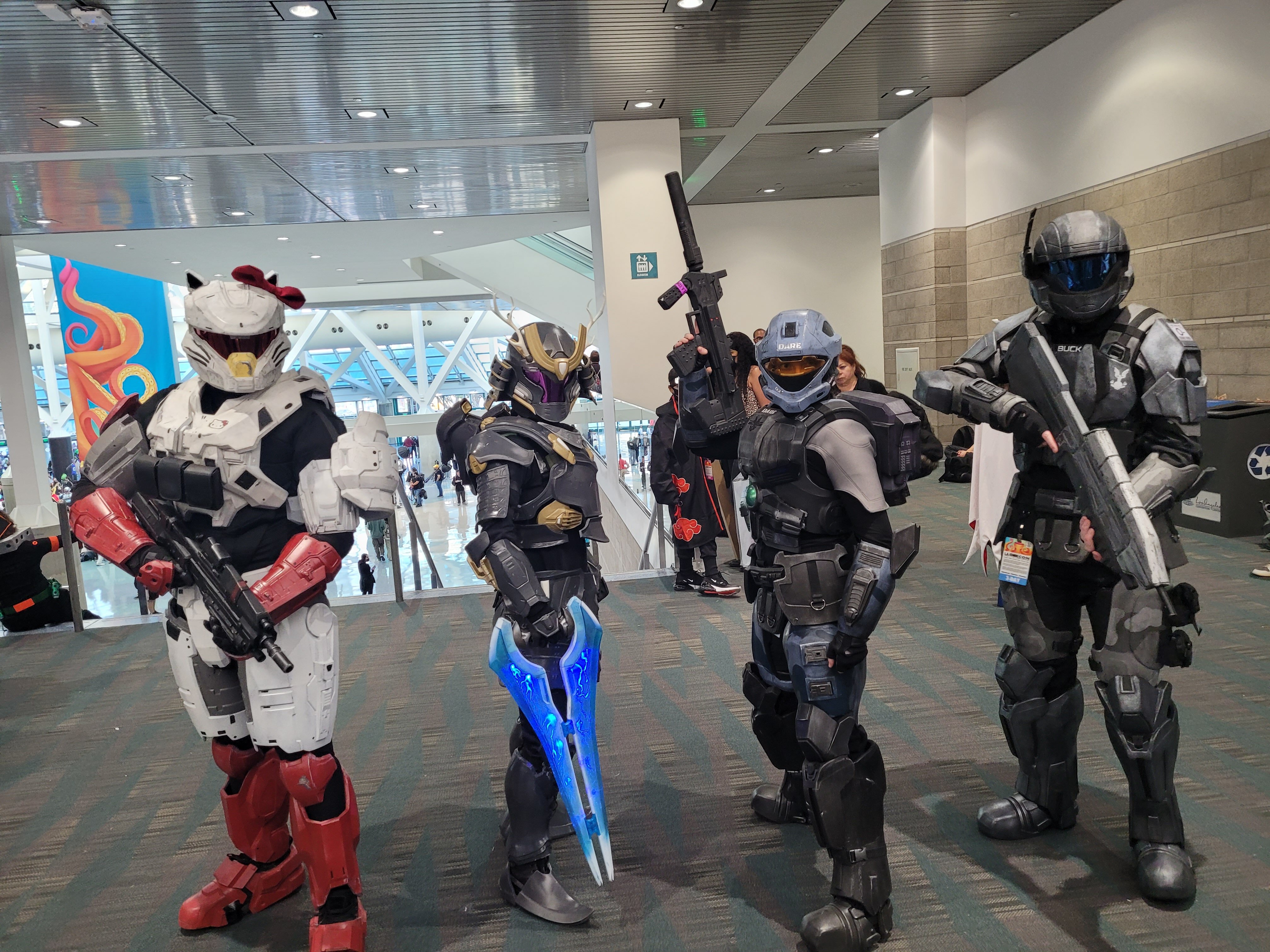 Saturday was judgment day, around 6 hours of wearing the suit. The longest I have worn the costume. And compared to Friday, Saturday had like 2.5x more people. To start off positive, I got to meet more people from the forums! I meet Sylvacan and we geeked out over each others costume for a while, the way he put together his costume was amazing. Its sometimes hard to see but he has this sick rainbow reflection finish on his armor which I thought was dope af. Later in the con Sylvacan, Indigo, and Cobalt Eclispe all found each other and took some photos which was really cool to have a bunch of Halo cosplayers together.