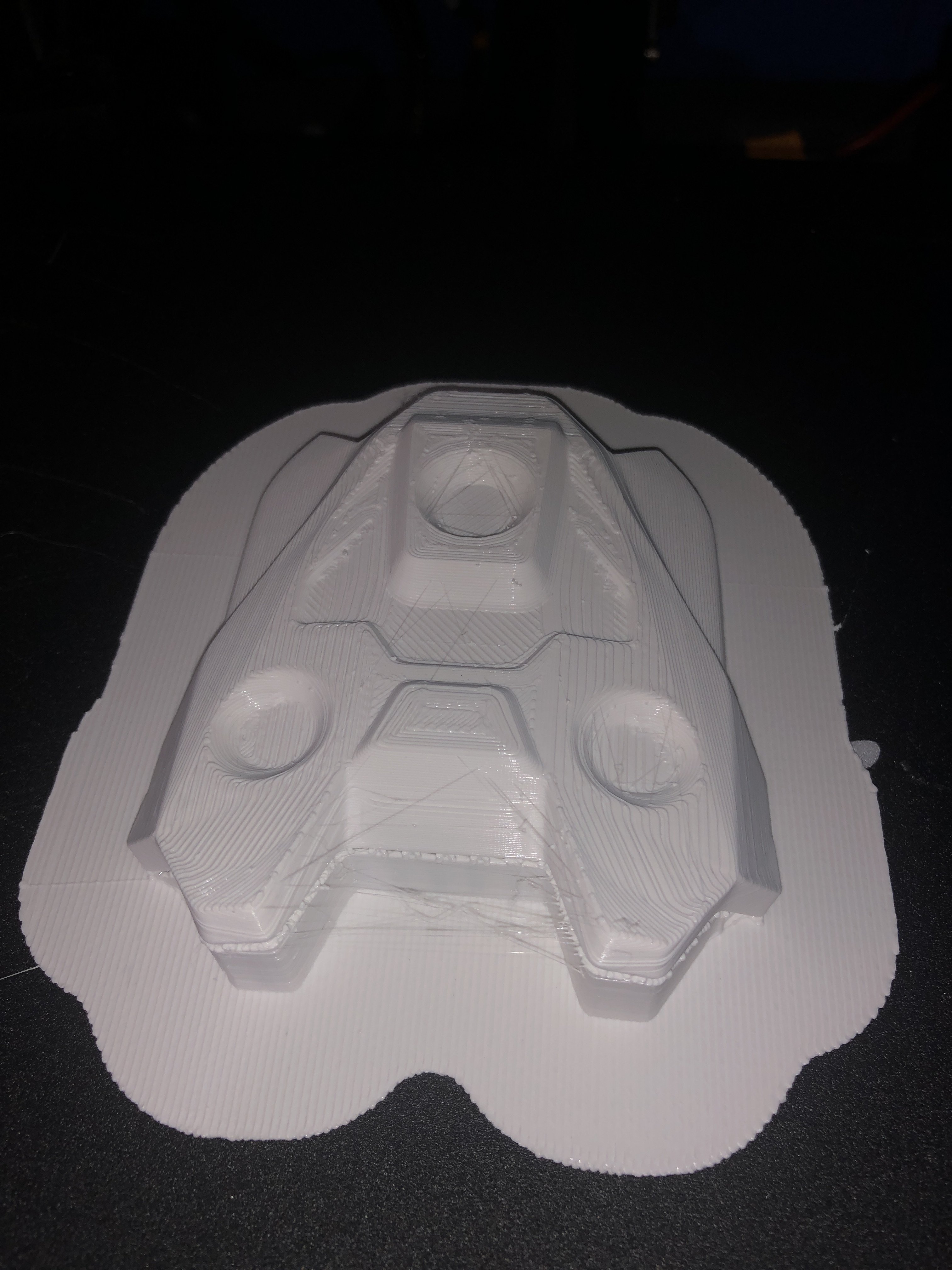 First thing I printed was the hand-plate armor since it’s likely the smallest and quickest. Have another one going now for the other hand and will be starting the top right front of the helmet tomorrow.