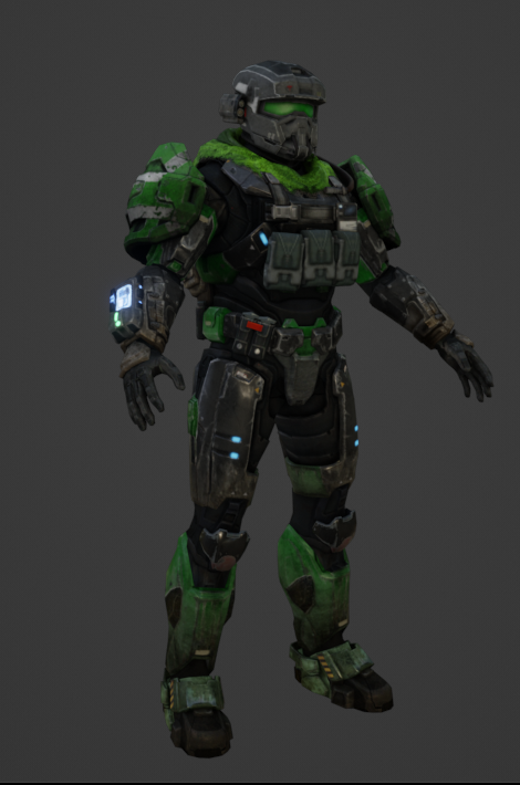 As of right now I'm thinking to do a dark grey and vibrant, midtone green. I've also made a rough design of my costume using a blender file which was created by lobster cosplay on YouTube, its below: