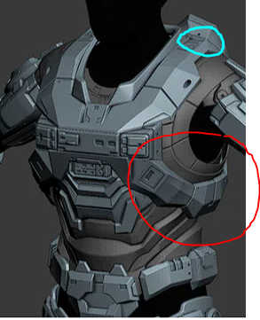 PROGRESS REPORT I have printed most pieces of the arms (I have to print the shoulders, i have printed the hand plates just need to get some gloves for them.), but I have three questions. Firstly, for armor would I use resin to fill print lines instead of the bondo? Since there is a lot of detail especially in the forearms that I don't want to lose. Secondly, I am about to start printing the big boy chest piece but at the red circle there are 3 parts that are needed to be connected (which ill add a picture of) (I am planning to use magnets for the aqua circle area) I do not know the best way to connect them when I wear the armor. If there are any suggestions, PLEASE let me know! Lastly what magnets do you guys reccomend?