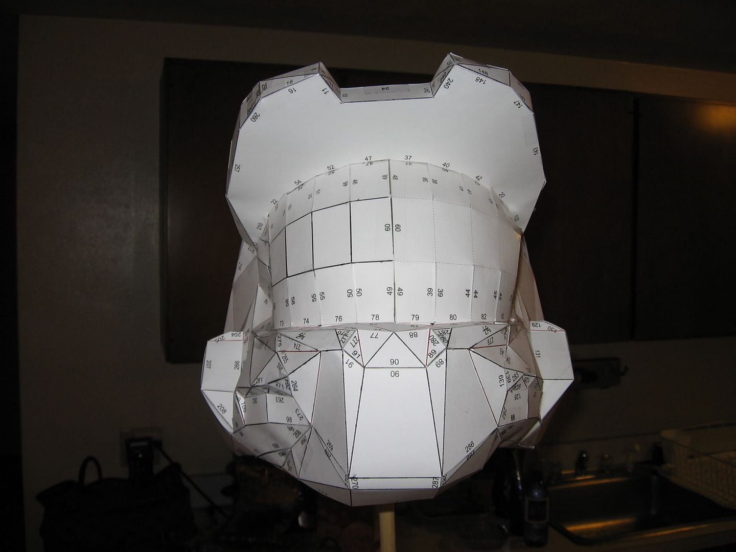I used 110lb cardstock, and read all of the how-to tutorials for Pepakura. I get compulsive once I start a project like this, so I worked for about 6 hour’s straight to put the helmet together.