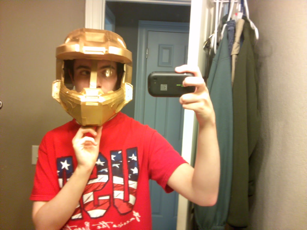 I like the gold, but I hope you did this for fun sake. I see that you did not resin or fiberglass the helmet. And also the helmet is too big. You may want to reduce it by 15%.