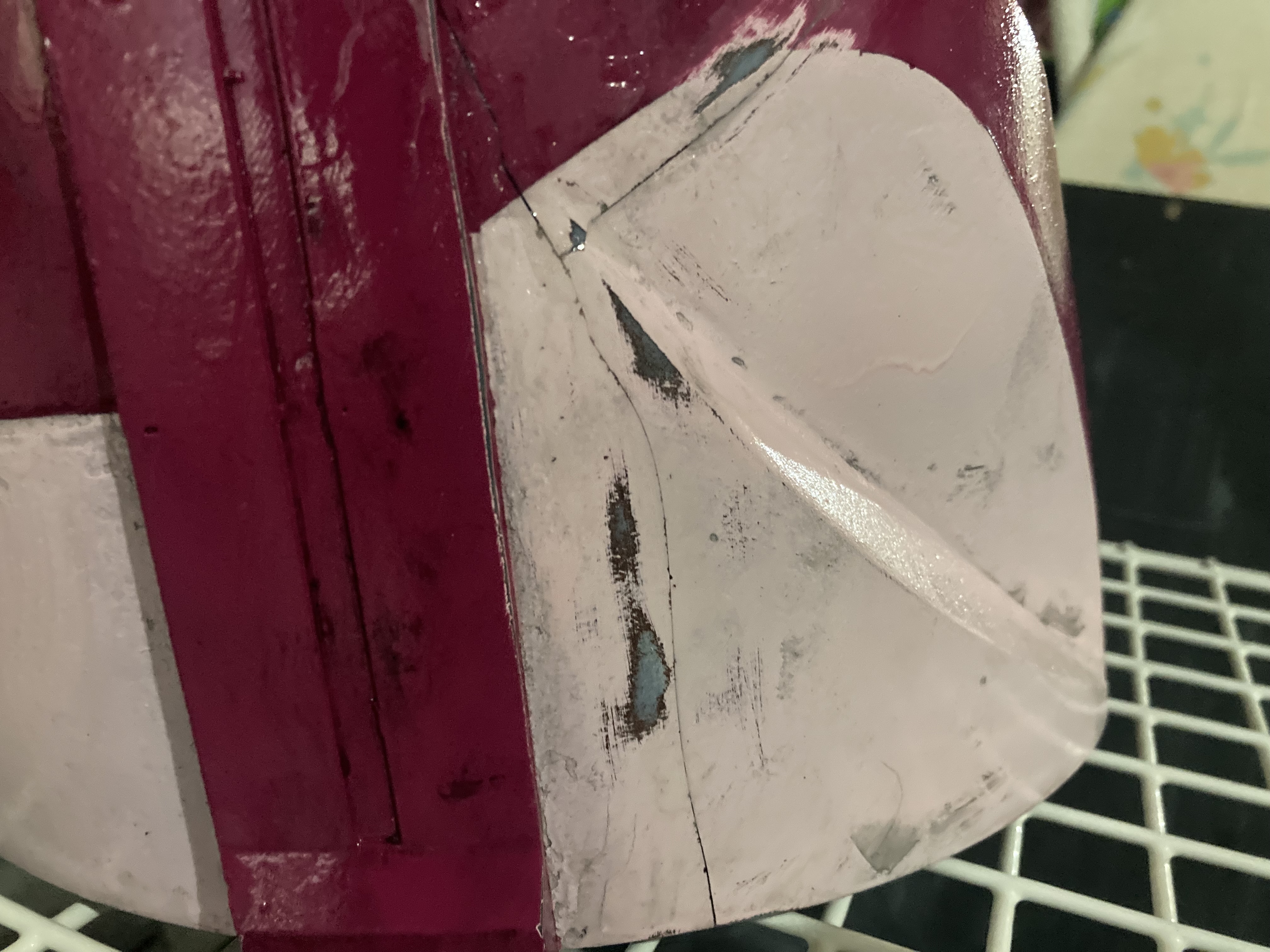 The piece that broke off is now fully reattached with 2-part epoxy resin, and I recently did some sanding to try and smooth it down, so I’ll need to do some paint touch-ups soon.
