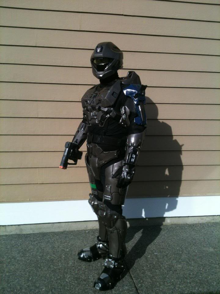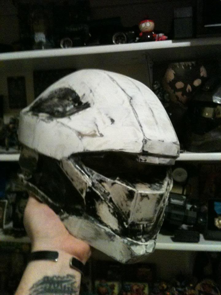 The newest addition to my armor is a grenade with a rare earth magnet fiber glassed on so that I can easily grab it from my side and place it back on it could look better but my skills with a dremel are not all that great i'm a solider not a artiest lol. And I put a pic that is off of the topic of my bulldog sitting by one of my helmets his name is Thycus he is named after Thycus Findlay from starcraft.