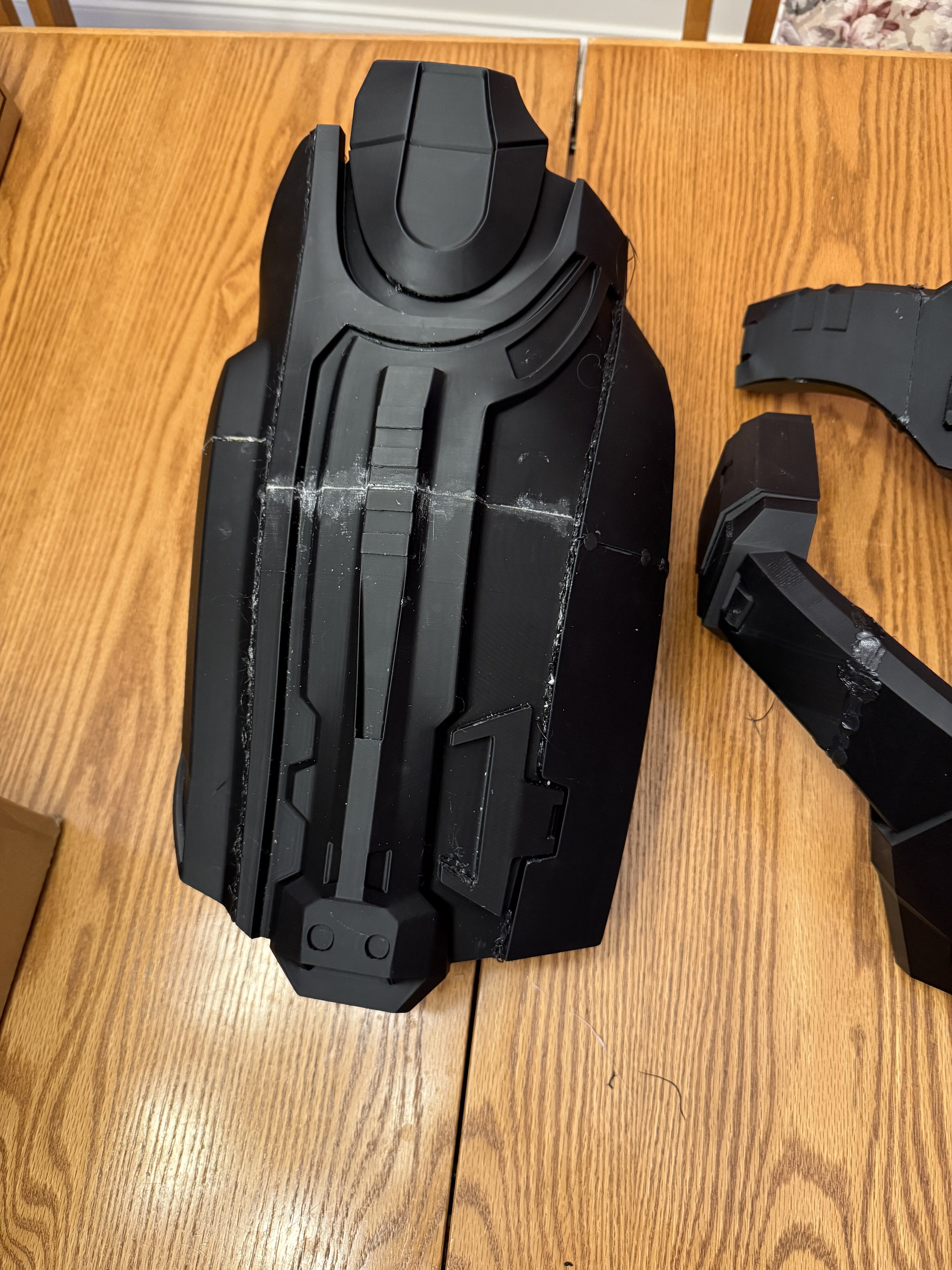 Hey everyone I’m back with the final progress update for my Mark IV build, The first torso I made was definitely too bulky and restrictive being fully welded together and only being able to be put on over head like a shirt. So, I ended up fully reprinting the torso and connecting the front and back via straps with quick release buckles over each shoulder with the collar pieces welded only to the back half below the thrusters to hide said straps and buckles. I got the idea from how