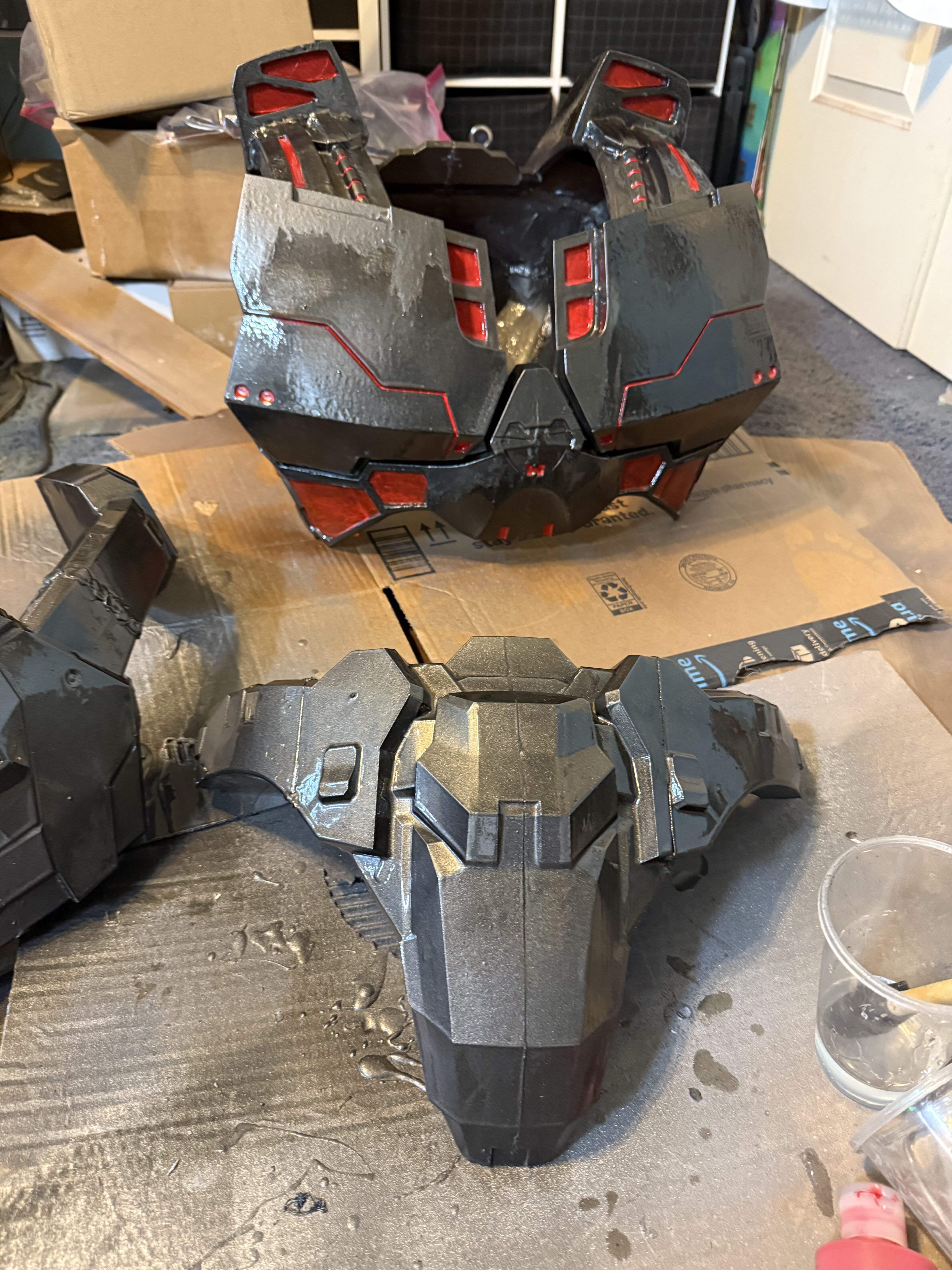 BHE Photos did his. I managed to finish the whole thing in time for GalaxyCon Raleigh last weekend and even made a cryst knife (from infinite) and OG M6D magnum to mount to the thighs with a strip of Velcro and made a few vinyl decals to add to the armor the night before when the idea came to me. The decals I made was Emile’s skull which I put on the right shoulder, a small legendary icon which I put on the left shoulder, a small Demon Multiplayer medal which I put on the side of the right thruster, a small tebag which I put on the cod piece (no one noticed it though