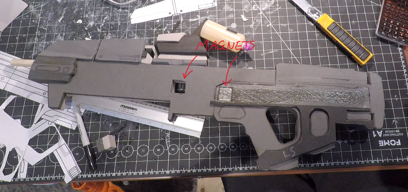 - The template proved to be quite useful for sizing of items and sometimes shape, but for the most part I used my printed AR and nerf AR as a guide so decide the overall geometry.