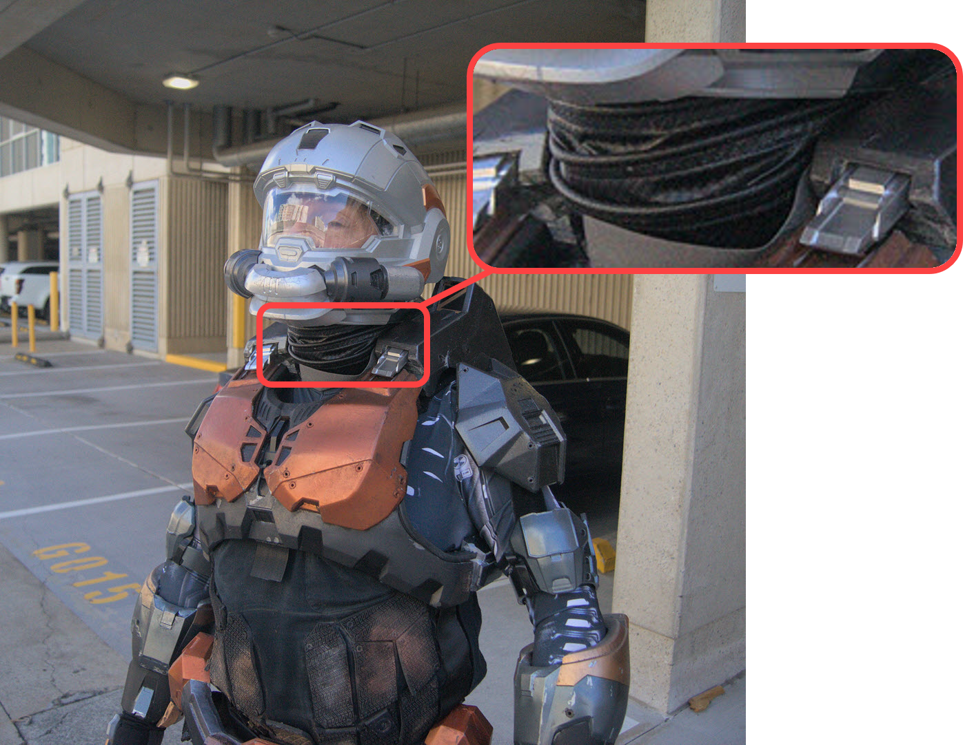 I'm following your lead on this one. I think it's a dope design especially for walking the con floor without your helmet on. I plan on putting/glueing EVA foam to fabric (with a ziber up the back of the neck). Hoping that will give me the shape that rigidity and sweet shape you made.